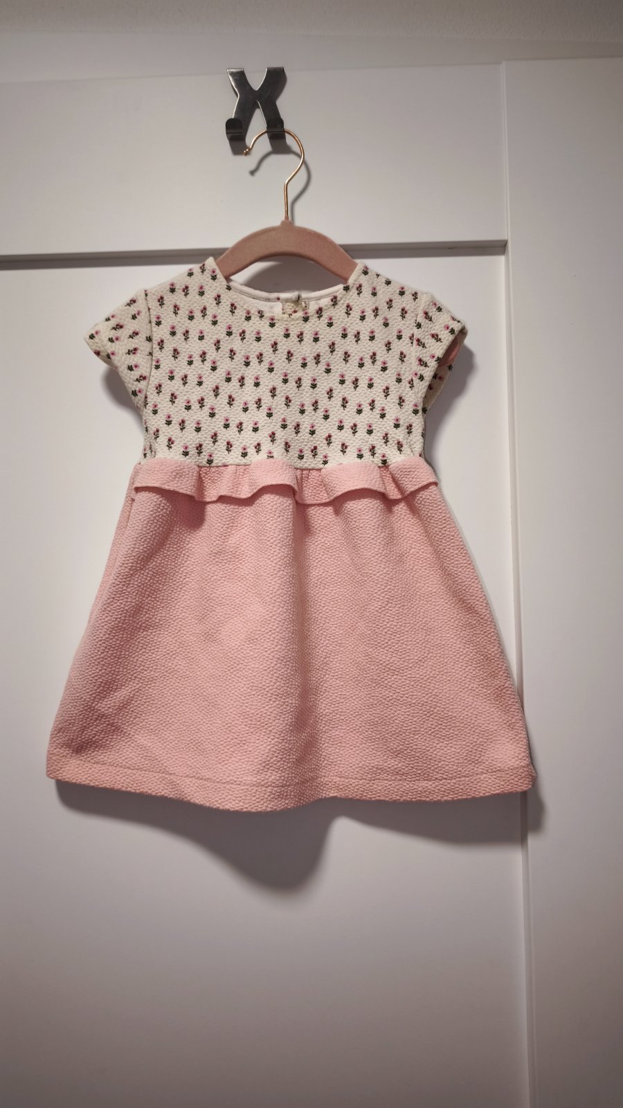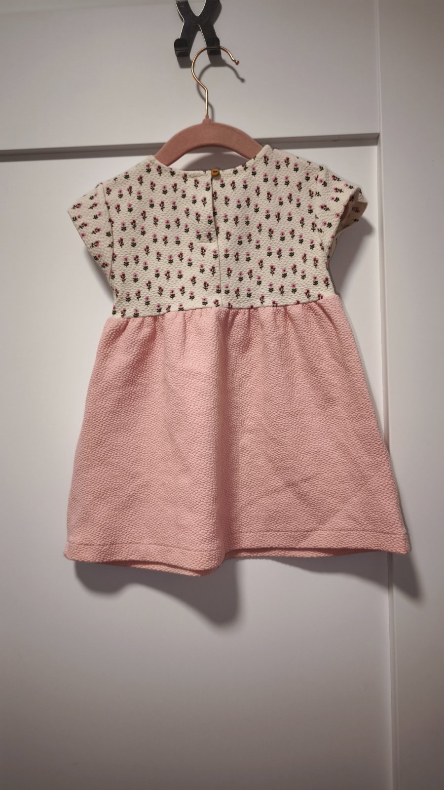 Krasne ruzove saty s kvetinkami. Material je trosku hrubsi, asi nie idealny na uplne horuce pocasie. Oblecene asi 3x, dcerka nestihla vynosit. Su v top stave. Bohuzial su bez visacky, velkost teda tipujem na 92/98 , v pripade zaujmu premeriam.