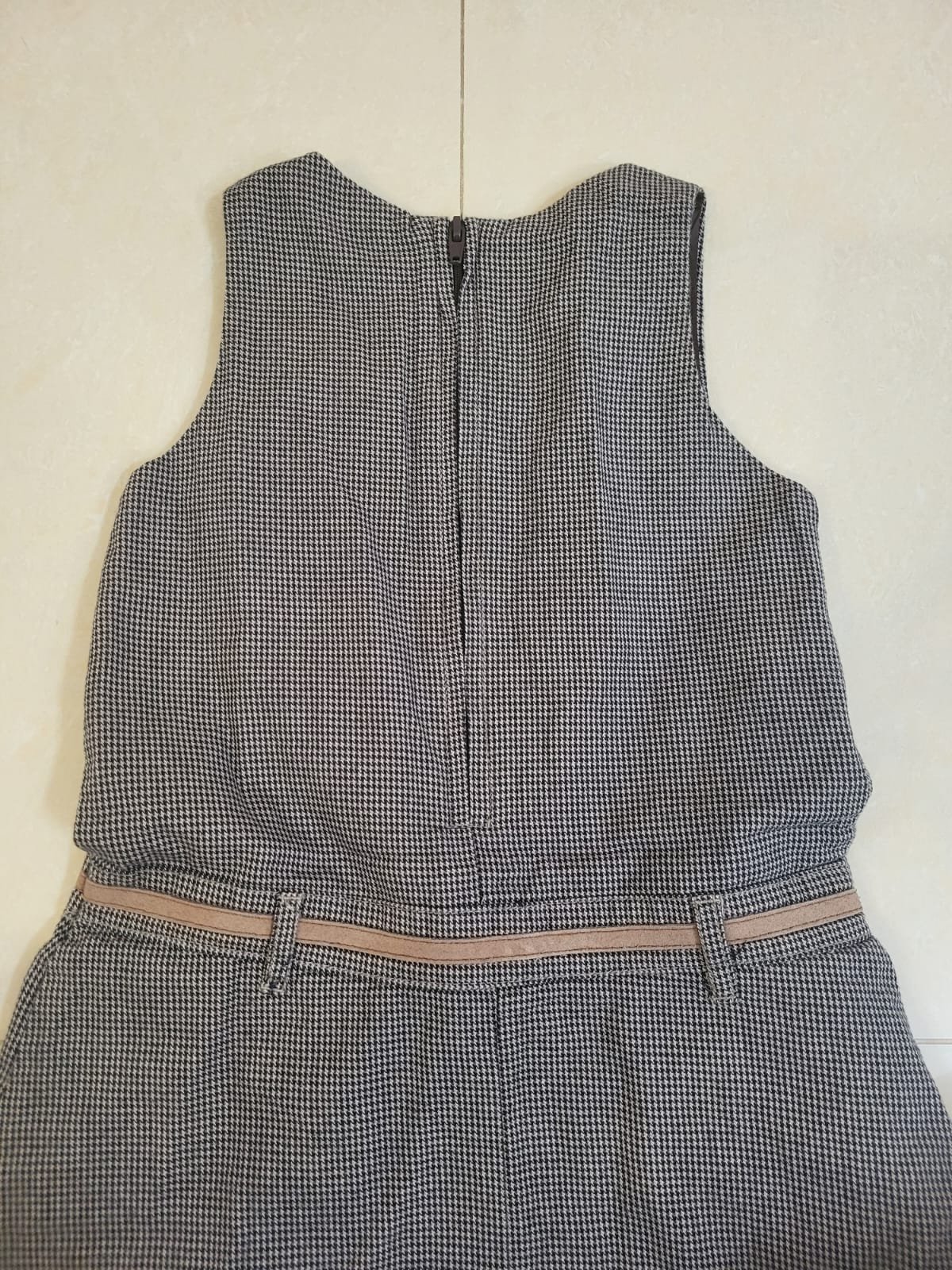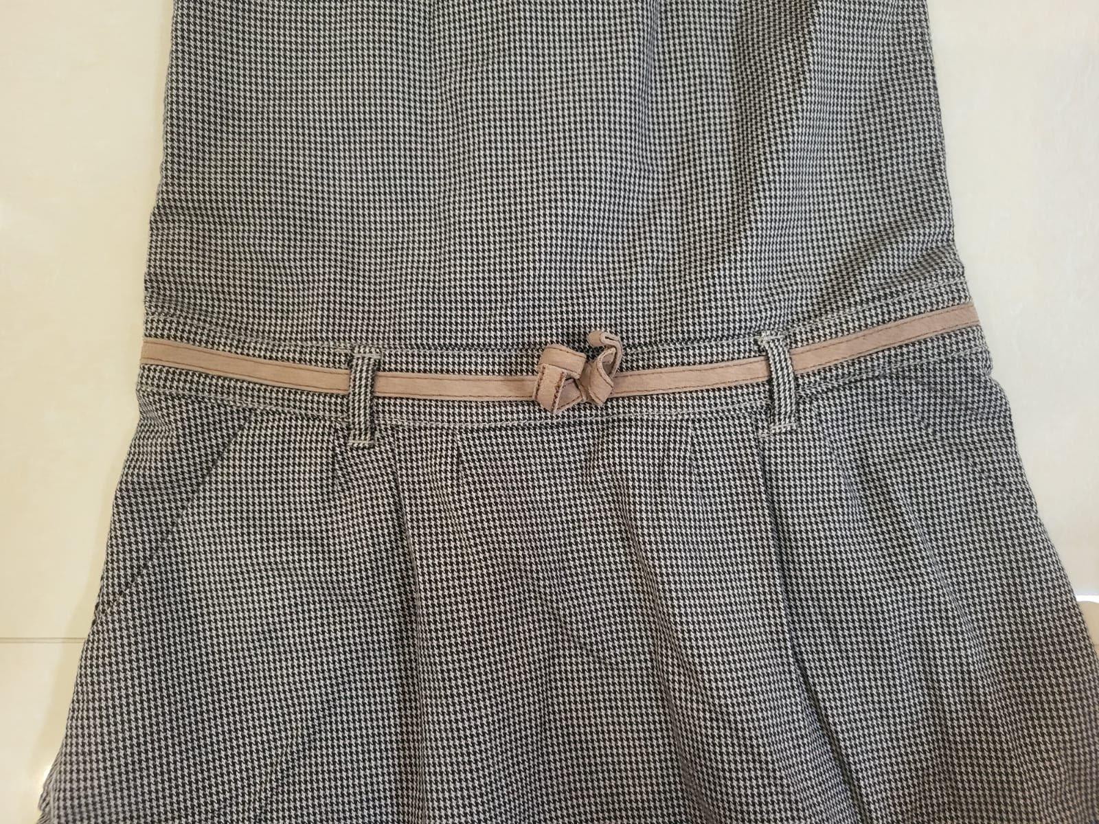 Veľmi dobrý stav! Dievčenské hnedo-ružové kockované šaty bez rukávov , zapínanie vzadu na zips, nie sú elastické, hrubšie, vrchná látka 50%vlna,50%polyester,podšívka 100%polyester. ROZMERY: dĺžka:...