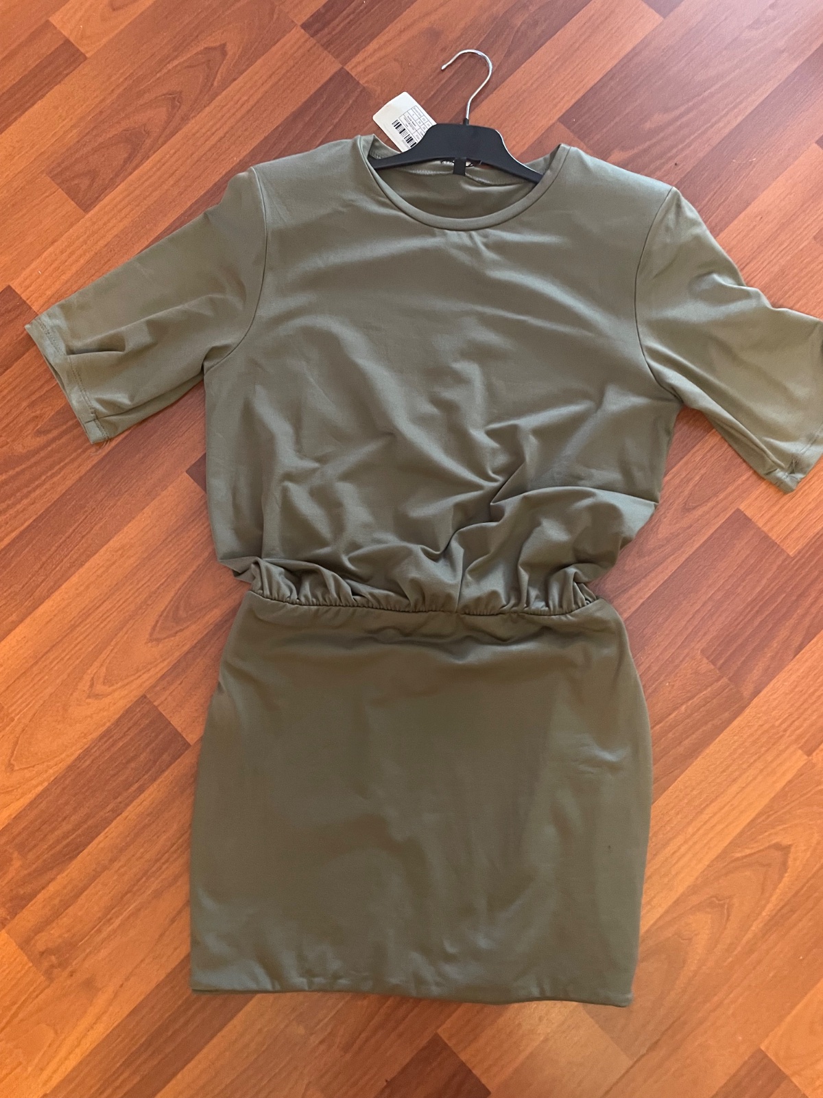 Moderné kakii šaty na zips. Veľkosť šiat S. Rozmery: celková dĺžka šiat 90 cm.cez prsia 49 cm, pás 45 cm, boky 50 cm. Vedľa vrecká jemne zatrhnutá jedna nitka, nie je to ani vidieť viď foto.