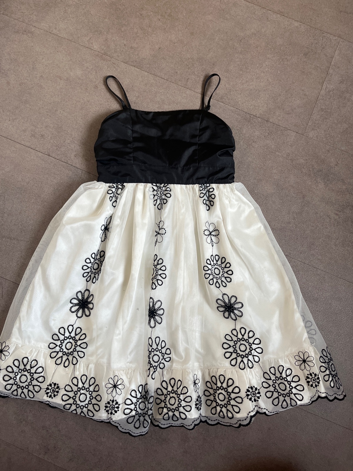 Vrch je z elastickej látky, pod sukňou je všitá spodnička. Materiál: vrch 96% viskóza, 4 % elastan, sukňa 100% polyester. Dĺžka 63 cm, šírka cez pás 28 cmx2.