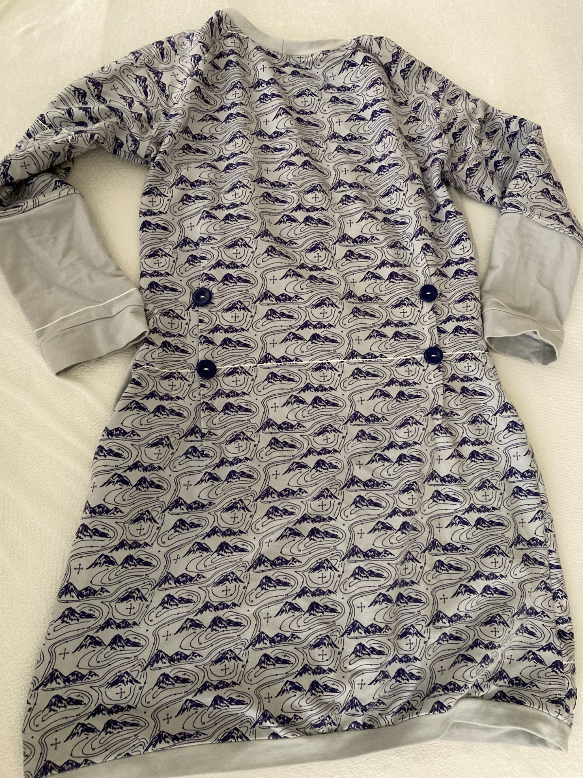 Ponukam moje kojenecke šaty, ktoré boli na mieru site v slow fasion dielni u slovenského výrobcu. Šaty maju pod obrázkom schovaný prehoz na gumu, ktorý umožňuje pohodlne, komfortné a hlavne decentné dojčenie aj na verejnosti. Je to veľkosť nieco medzi M a L. Material je príjemná hrubá teplakovina, vhodne na zimné ročne obdobie. Šaty su veľmi prakticke, po oboch stranách maju vrecka. Pridávam k nim na požiadanie robené nákrčníky mama a dieťa. Dohoda na cene mozna.