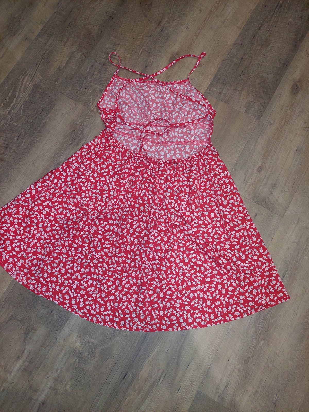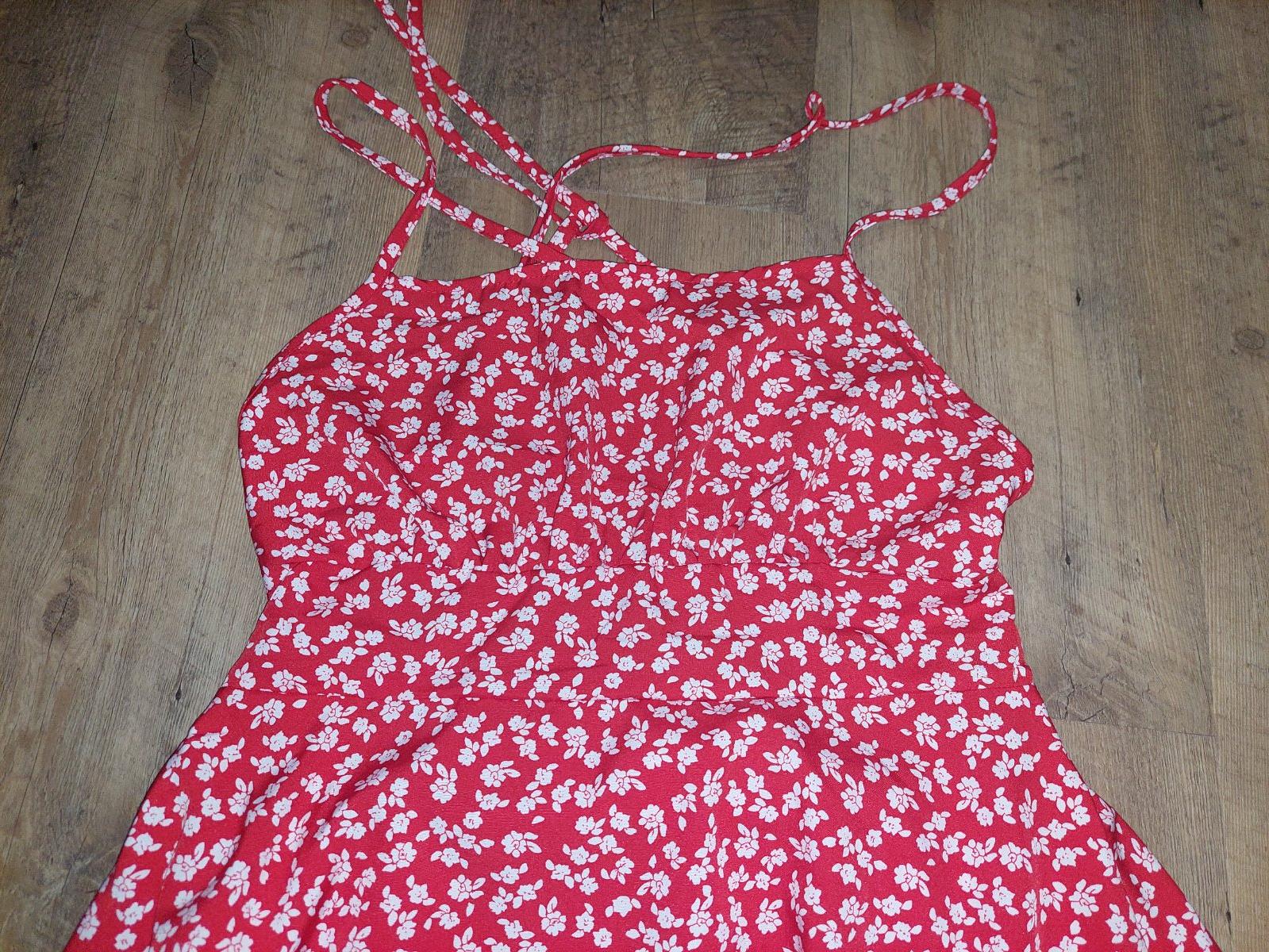 Cervene saty s holym chrbtom. Viazu sa vzadu na chrbte a sukna ma gumu cize su velmi prisposobive