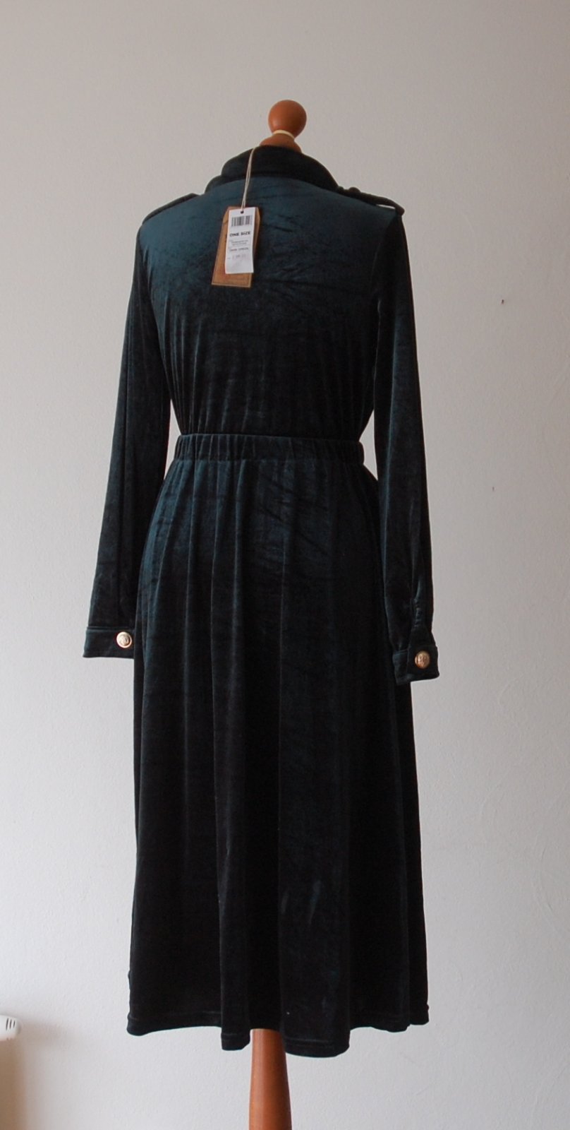 Predám tieto nádherné tmavozelené šaty značky Timeout vyrobené z luxusného a mäkkého zamatu (velúru). Šaty majú štýlový zavinovací strih s véčkovým výstrihom, ktorý krásne zvýrazní postavu. Zlate knofle M/L.
