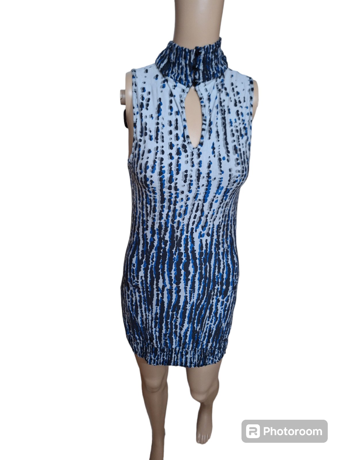 Dámske riflové šaty. Dĺžka 76cm. Cez prsia 35cm. Sú elastické.