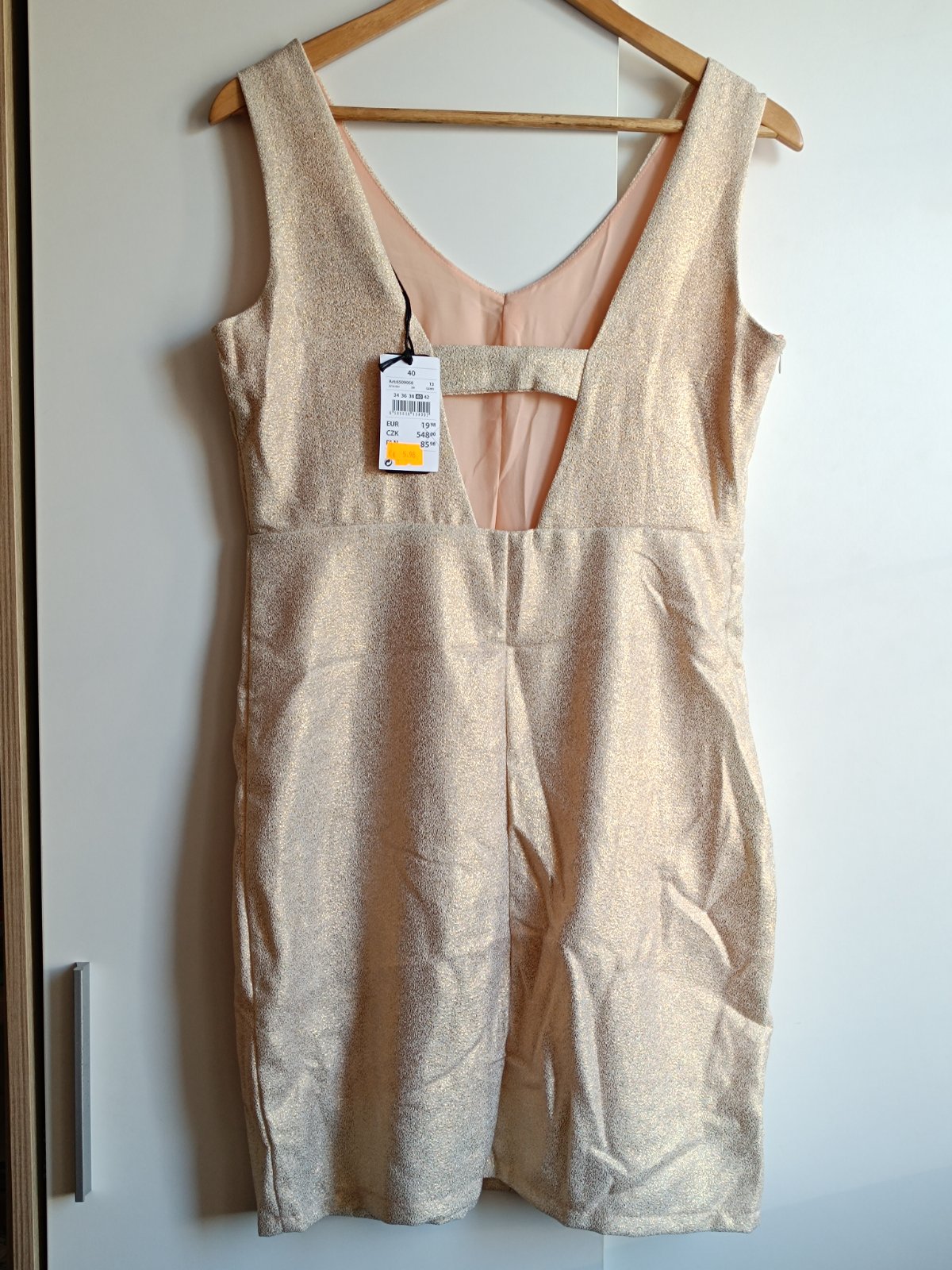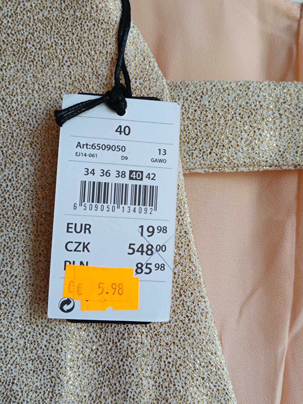 Predám spoločenské šaty, raz oblečené. Sú zlatej farby, kvet sa dá odopnúť. Na Z.D. ale boli "amatérsky" zúžené.. Vypárala som to, viď foto. Treba to rozžehliť, myslím, že sa to trochu stratí.. Ja ...