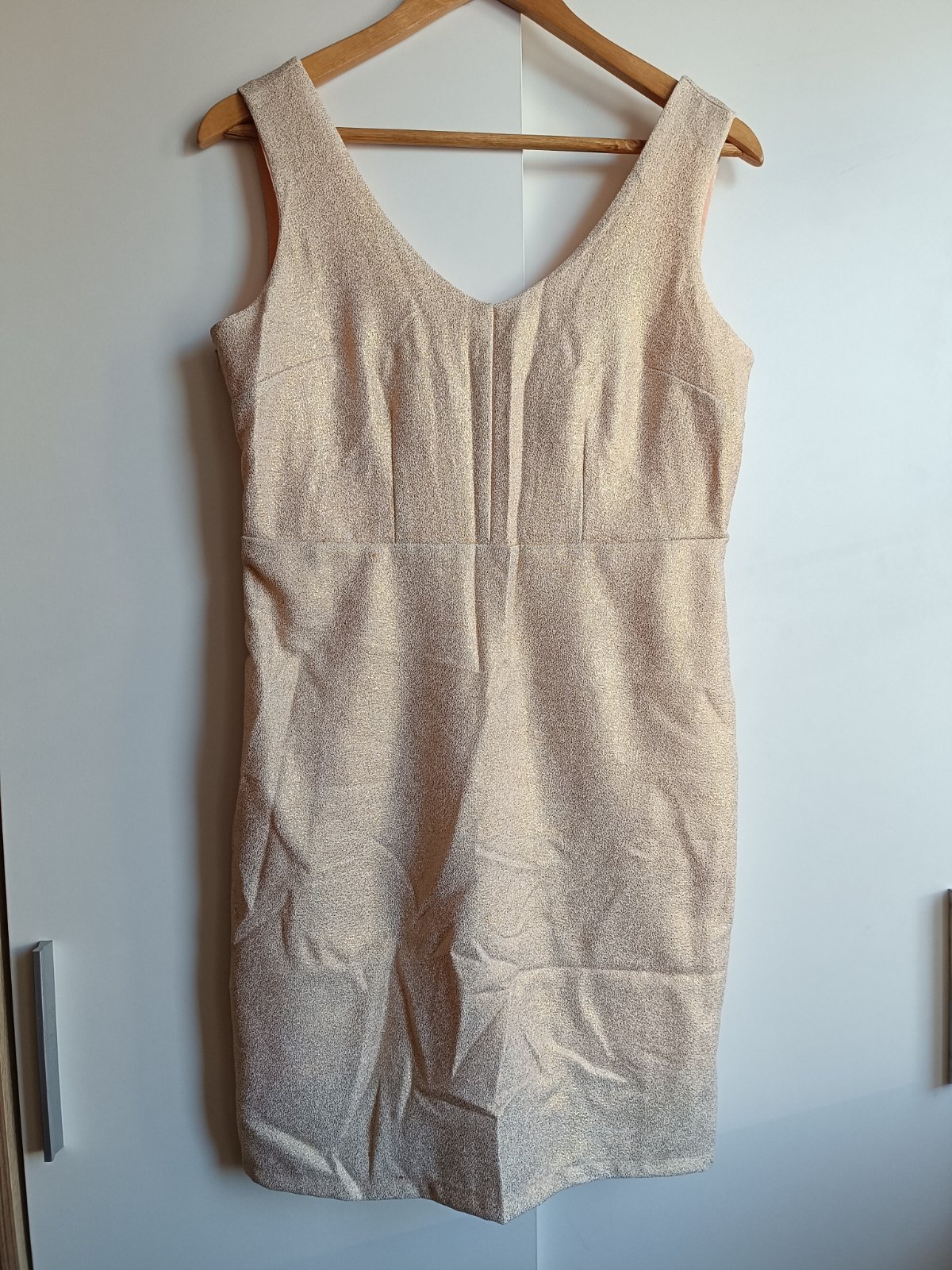 Nosene bez poskodenia.Znacka je Oasis.Velkost je 40.Material je 96% acetatovy hodvab a 4% elastan.Rozmery su cez prsia 46 cm x 2,v pase 37 cm x 2,cez boky 52 cm x 2,bocna dlzka je 83 cm.