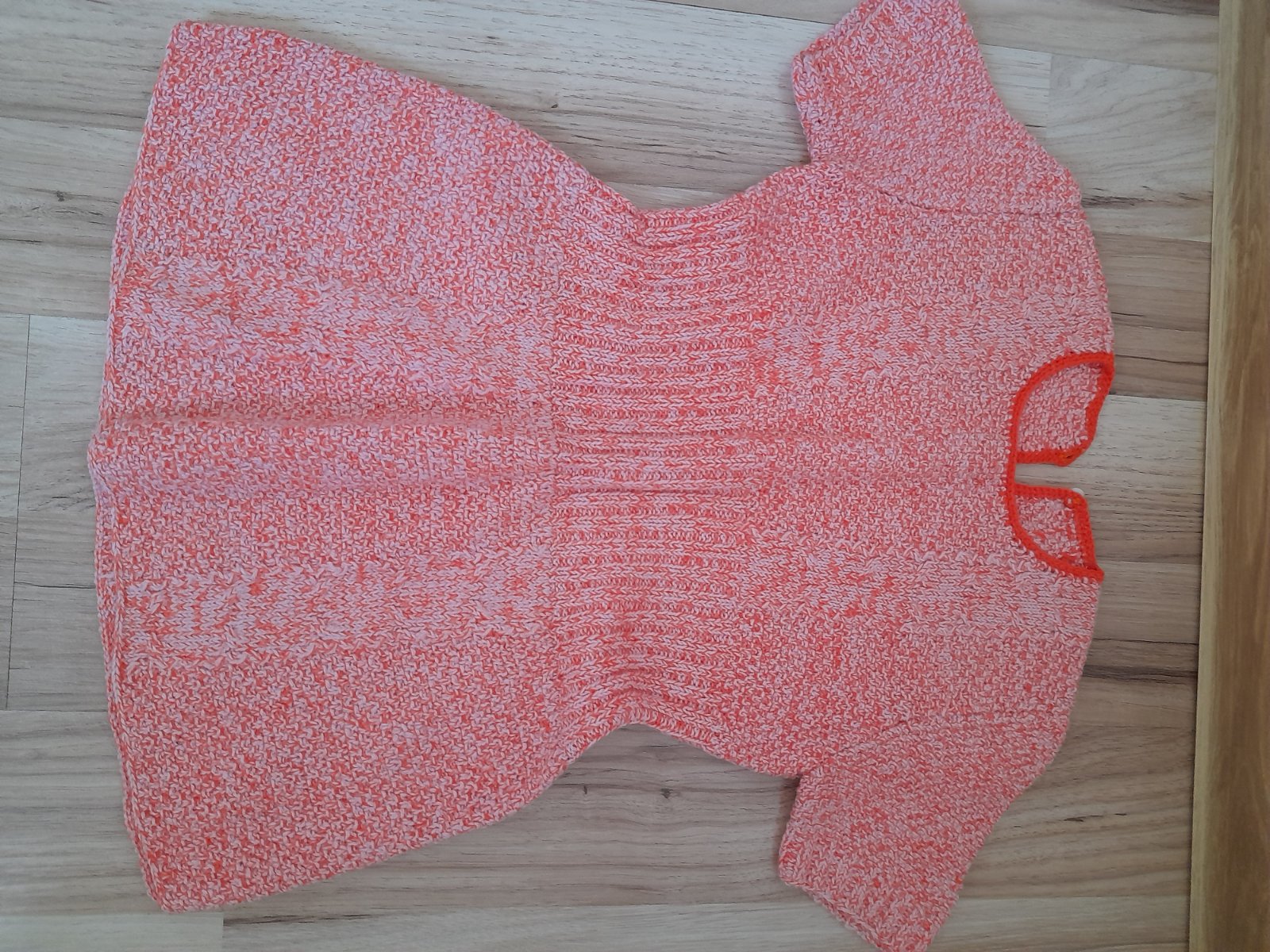 Mnou site šaty, teplákovina marhuľová jemná farba, veľkosť 116/122,dl.rukava 38cm od pleca, 45cm od priekrcnika