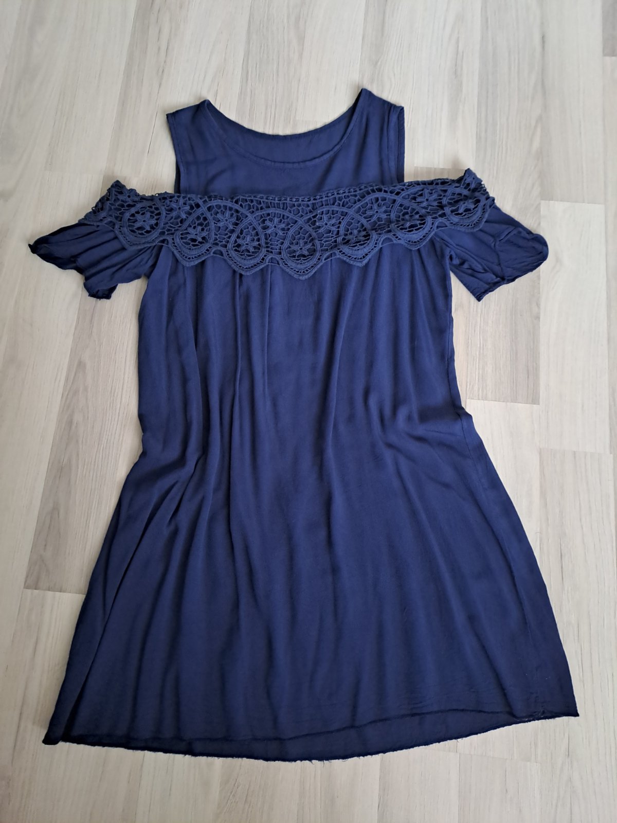 Šaty na leto, so spadnutými rukávmi. Pekný stav, bez poškodení.