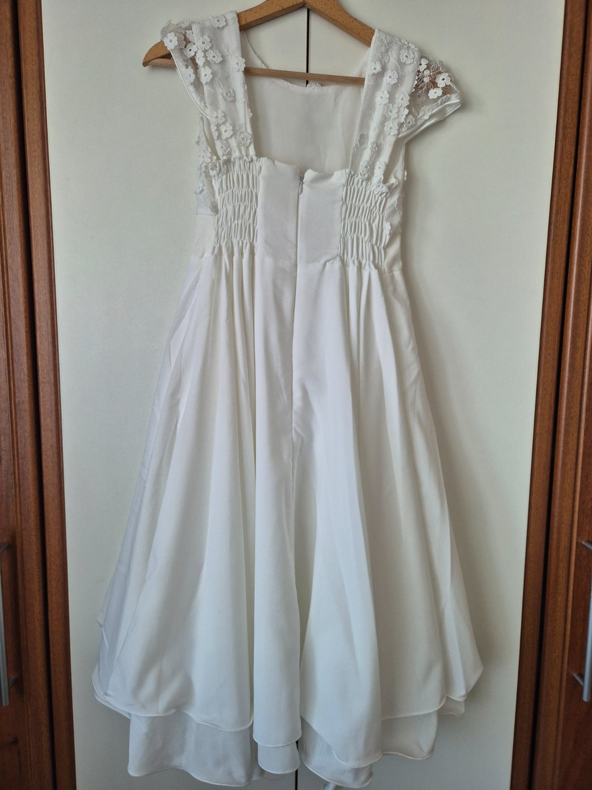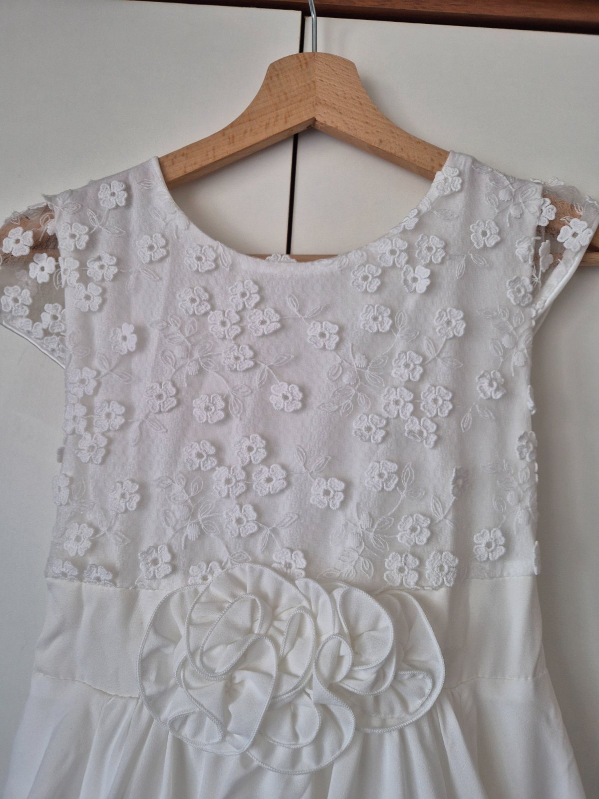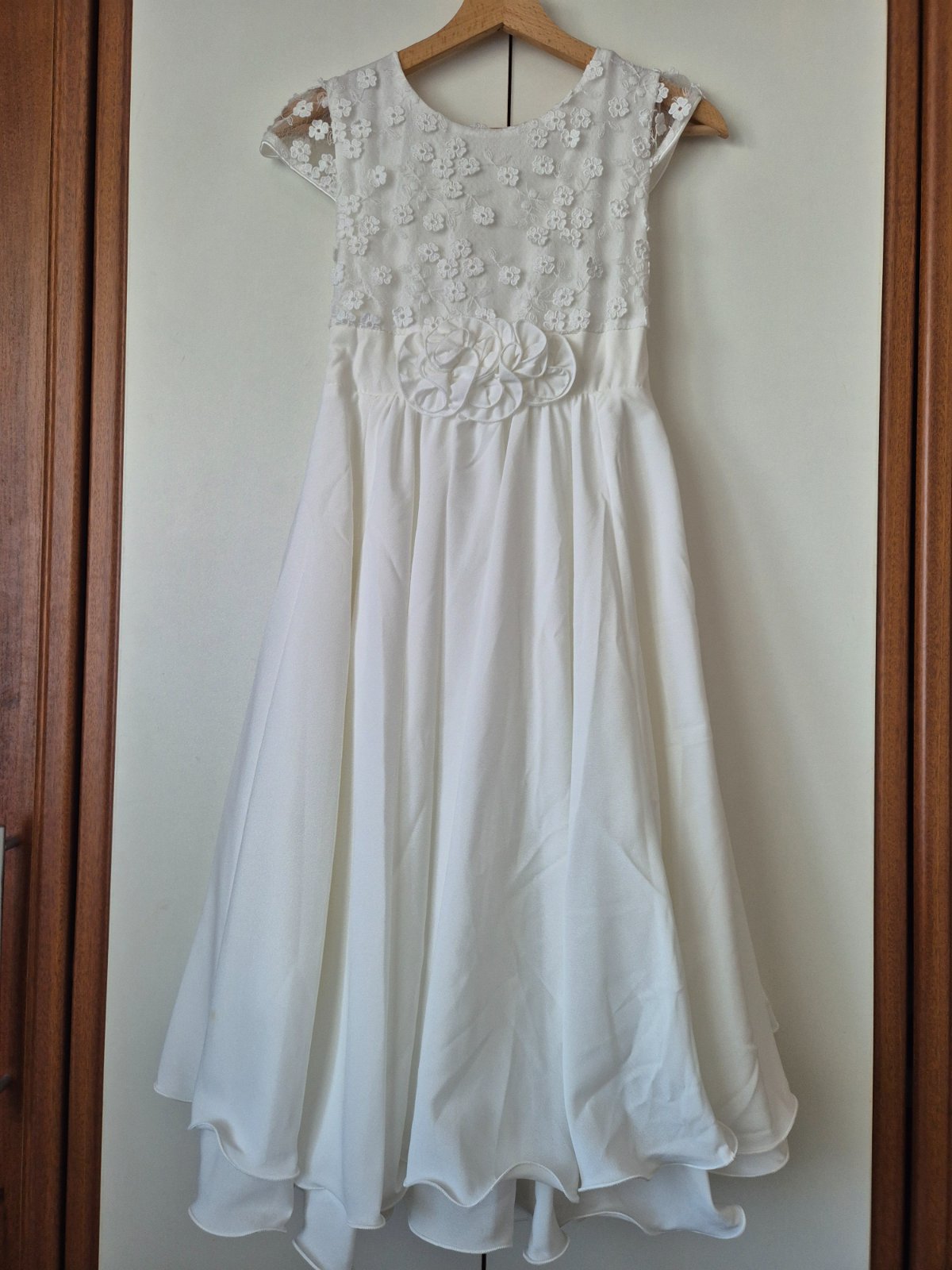 Predam saty na 1. sv. prijimanie. Stitok som nenasla, ale velkost odhadom 140 -146 . Zalezi podla toho ako dlhe chcete.