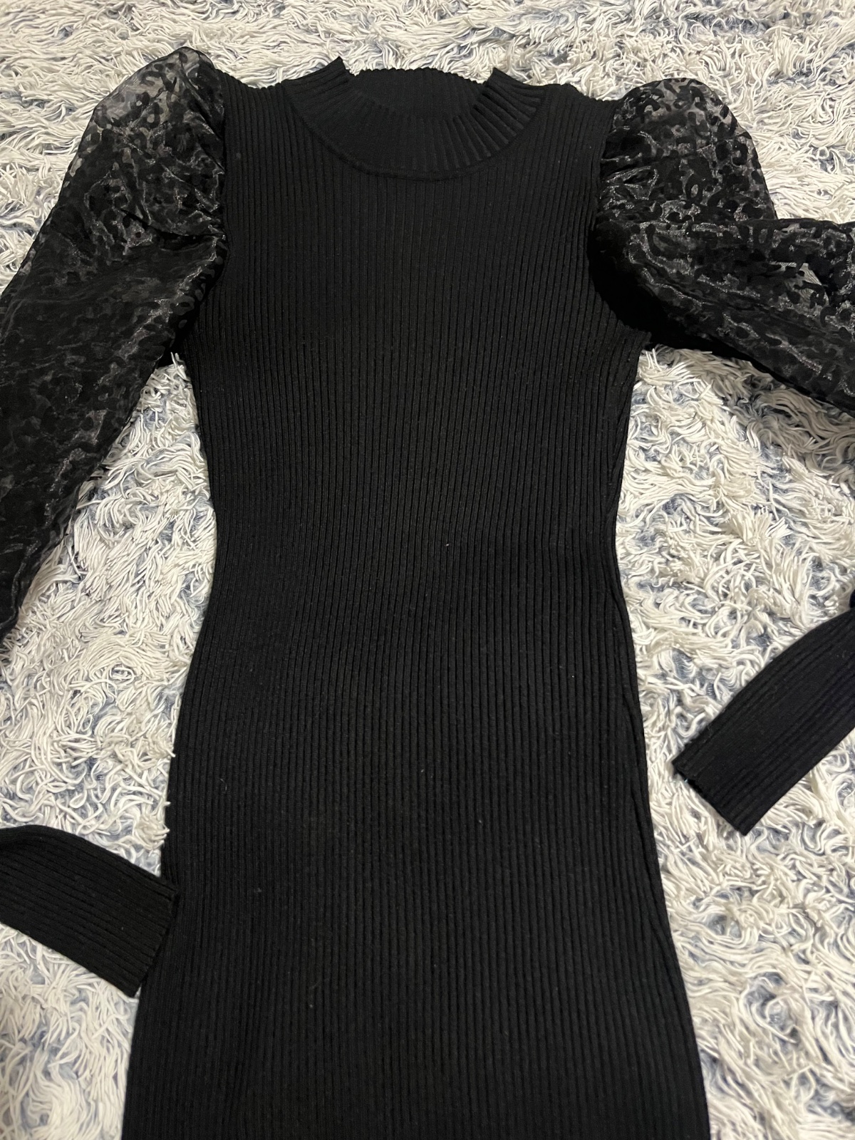 Svetrové saty s priesvitnými rukávkmi puff