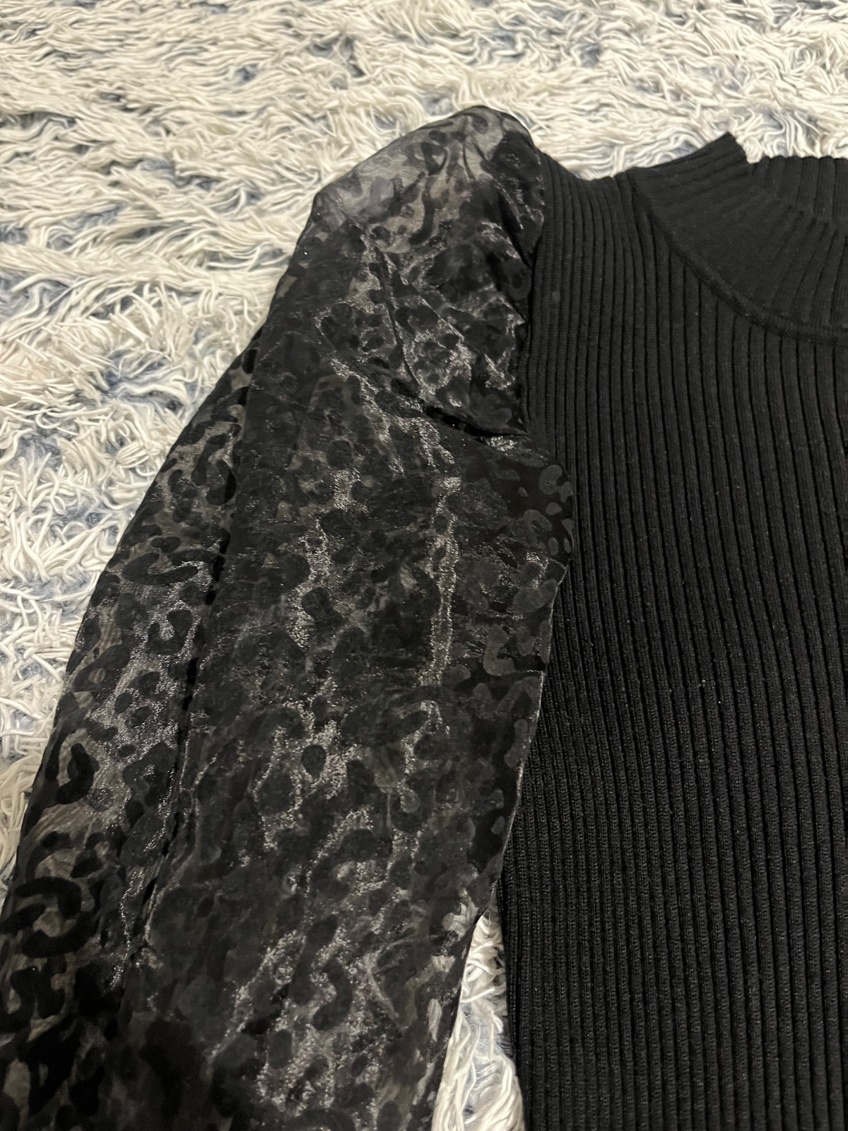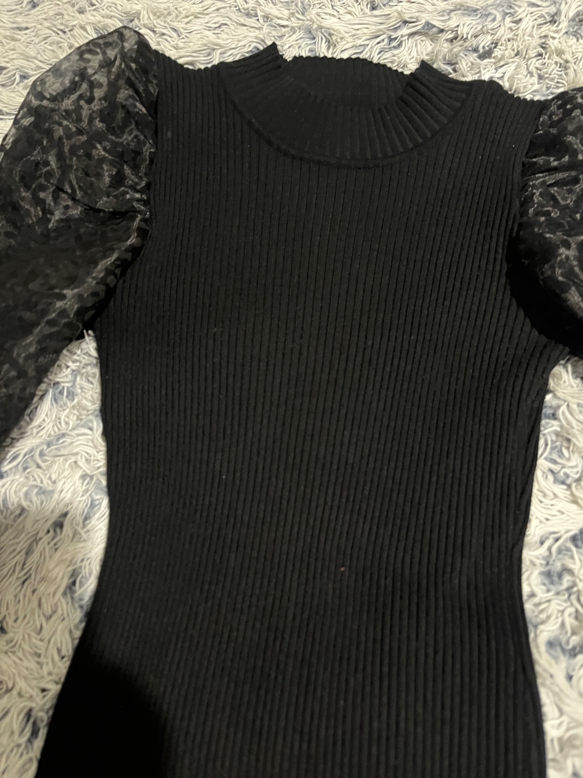 Damske saty svetrove s priesvitnymi puff rukavmi top stav 1x oblecene velkost s-m ale kludne ak L prisposobi sa postave elasticke