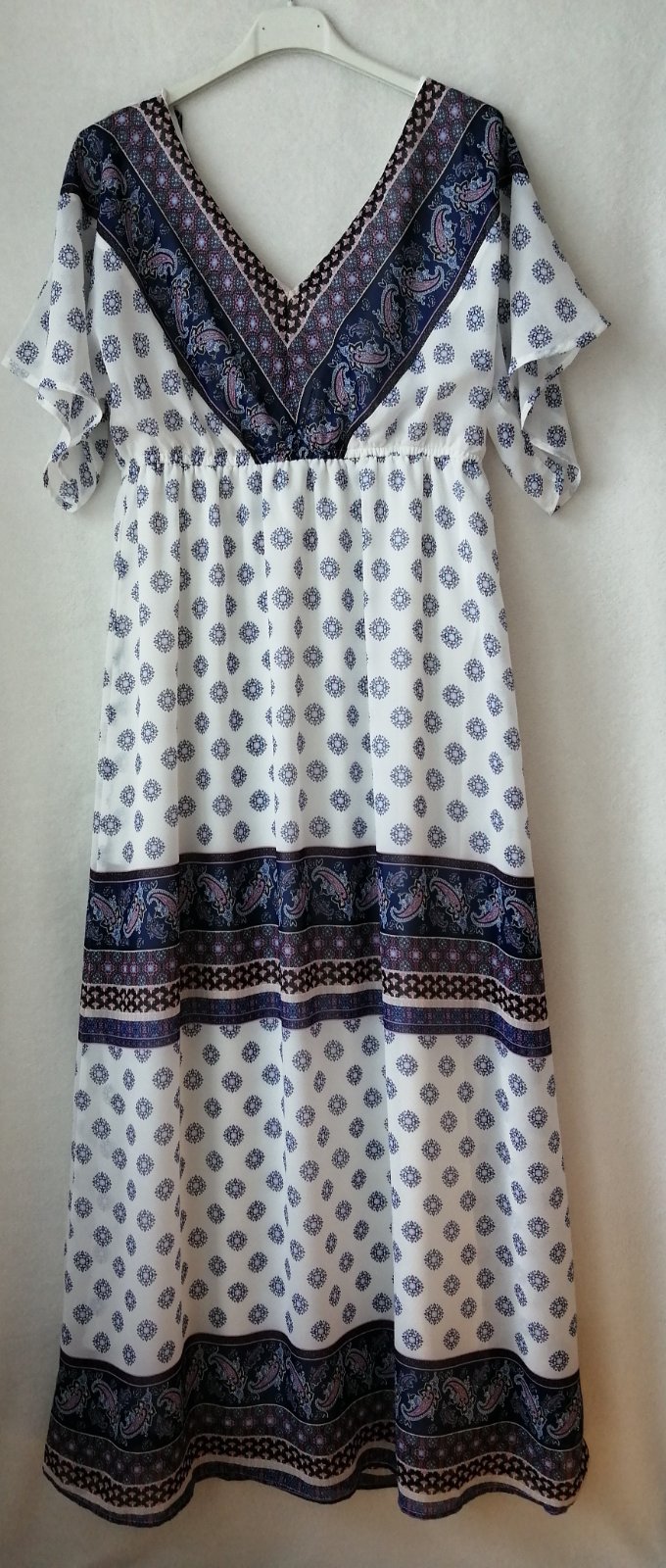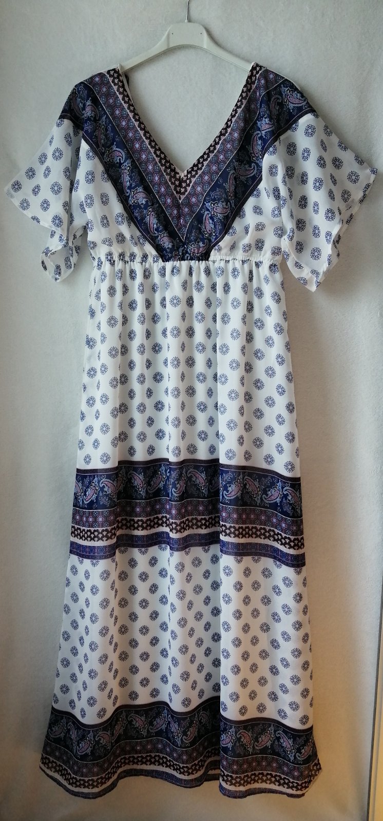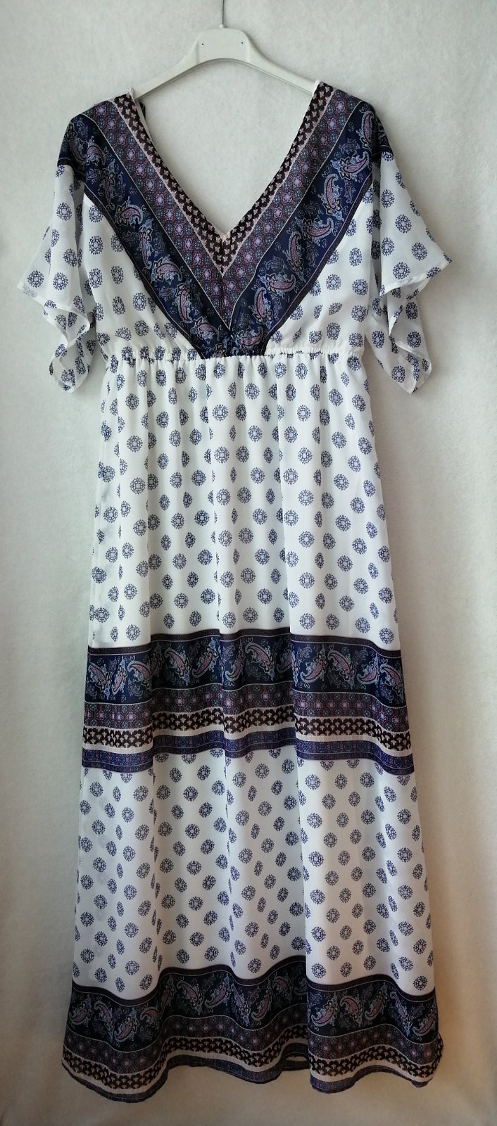 Krásne dlhé šaty na leto vo veľkosti 40 alebo L. Veľmi pekný a hlavne pohodlný strih. Šaty sú chránené cez hrudník a chrbát, ako aj od pása nadol ľahkou spodničkou, čiže nie sú priesvitné. Sú v top stave, mala som ich minulé leto 2 x oblečené, po vváhovom úbytku sú mi žiaľ už voľné. Cena 19 eur + poštovné
