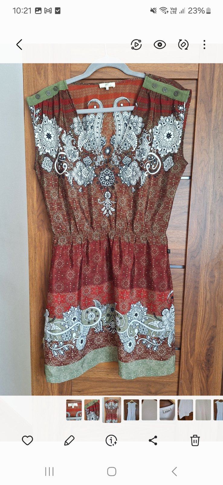 Ponúkam na predaj veľmi pekné olivové (zelené, kaki) letné šaty, málo nosené (asi 2 x), posúvam, mám toho veľa. Veľkosť M/L (EU 38-40). Zaujímavý strih, vpredu kratší diel, vzadu predĺžené, ľahký p...