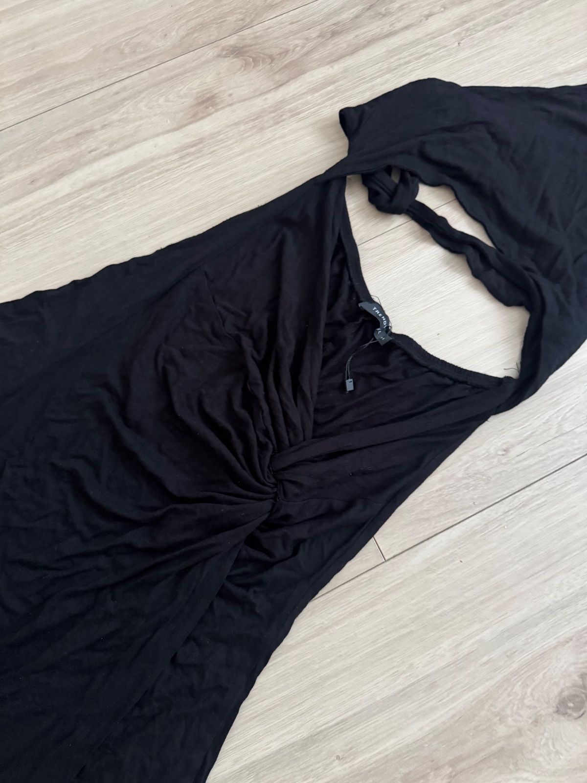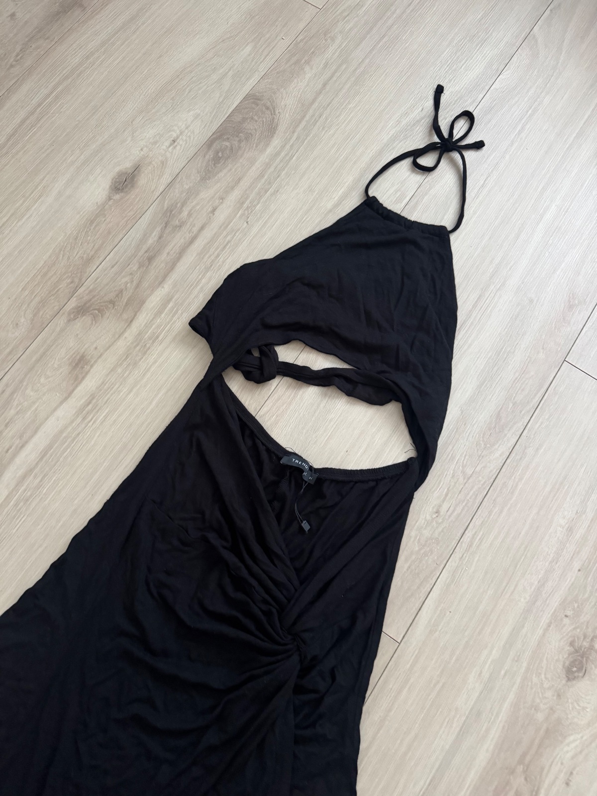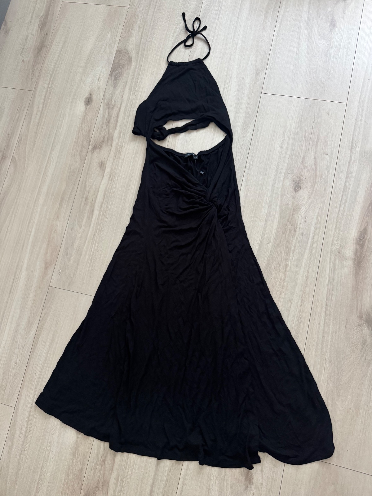 Ponúkam tieto šaty zn. H&M, čiernej farby, vpredu krátke mini, vzadu dlhé maxi, vrchná časť bez rukávov je úpletovo-sieťkovaná - kosoštvorec vpredu je látkový, ostatok je sieťkovaný (viď predposled...
