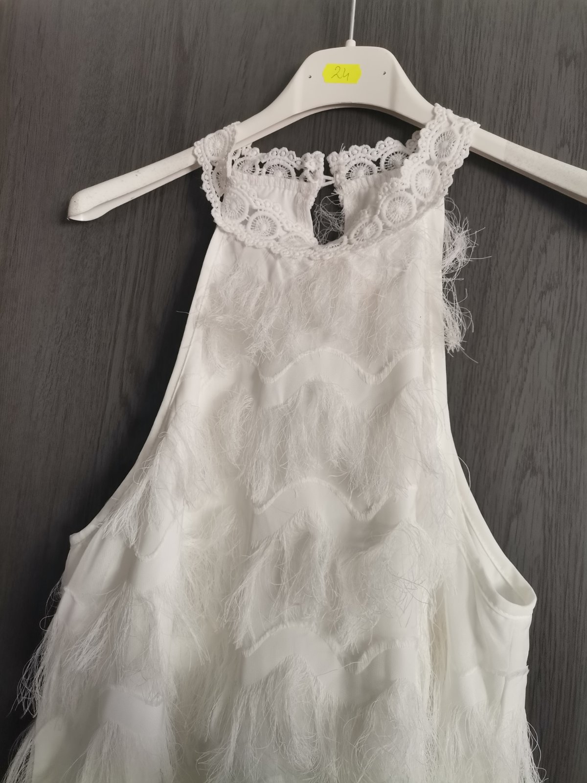 Biele saty z H&M, 1x oblecene, 100% stav, dlzka 94cm, sirka pod pazuchami 47 cm, pruzny material, podda sa