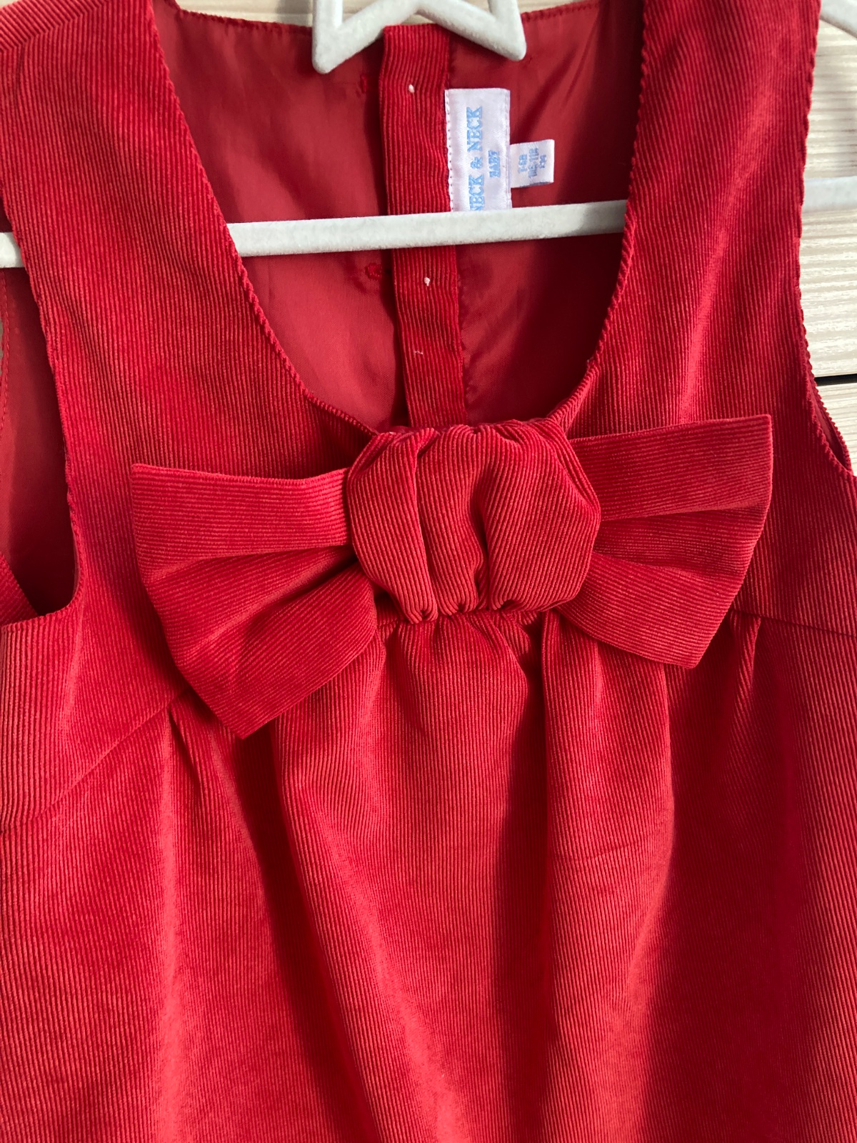 Ponukam na predaj krásne mencestrove saty s mašľou na hrudi. Suknička je zvláštne šitá, podhnuta dovnútra, vyzerá ako lupienok kvetu a krásne stojí. Visacka udava velkost 106-118, nosiť sa dajú od 110,116 a ponosite aj ako menšiu 122. Vzadu na chrbatiku je zapínanie na gombíky, čo uľahčuje obliekanie.