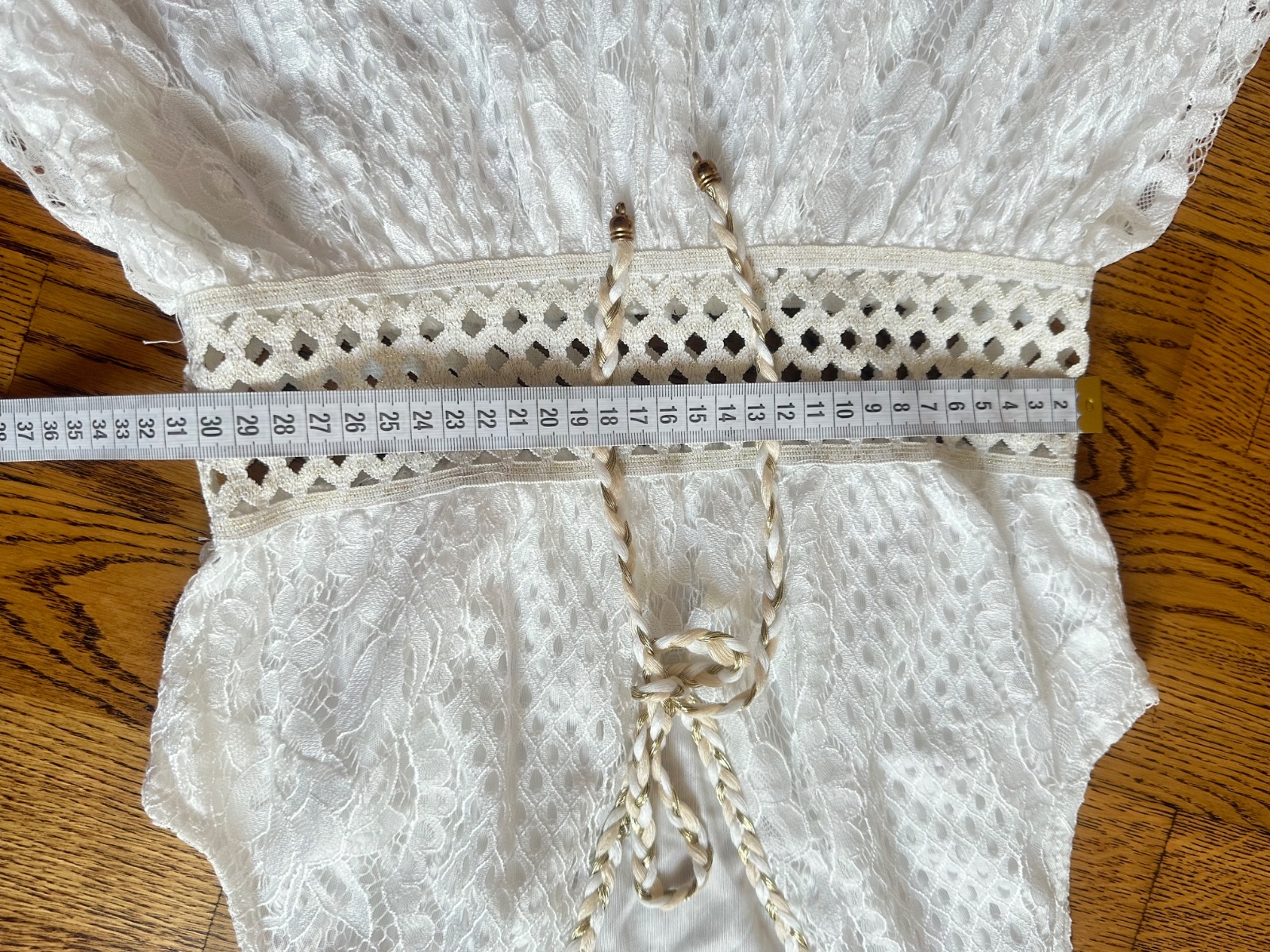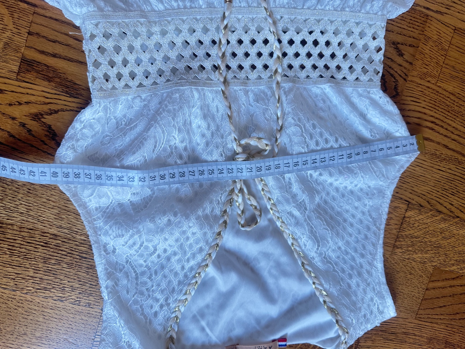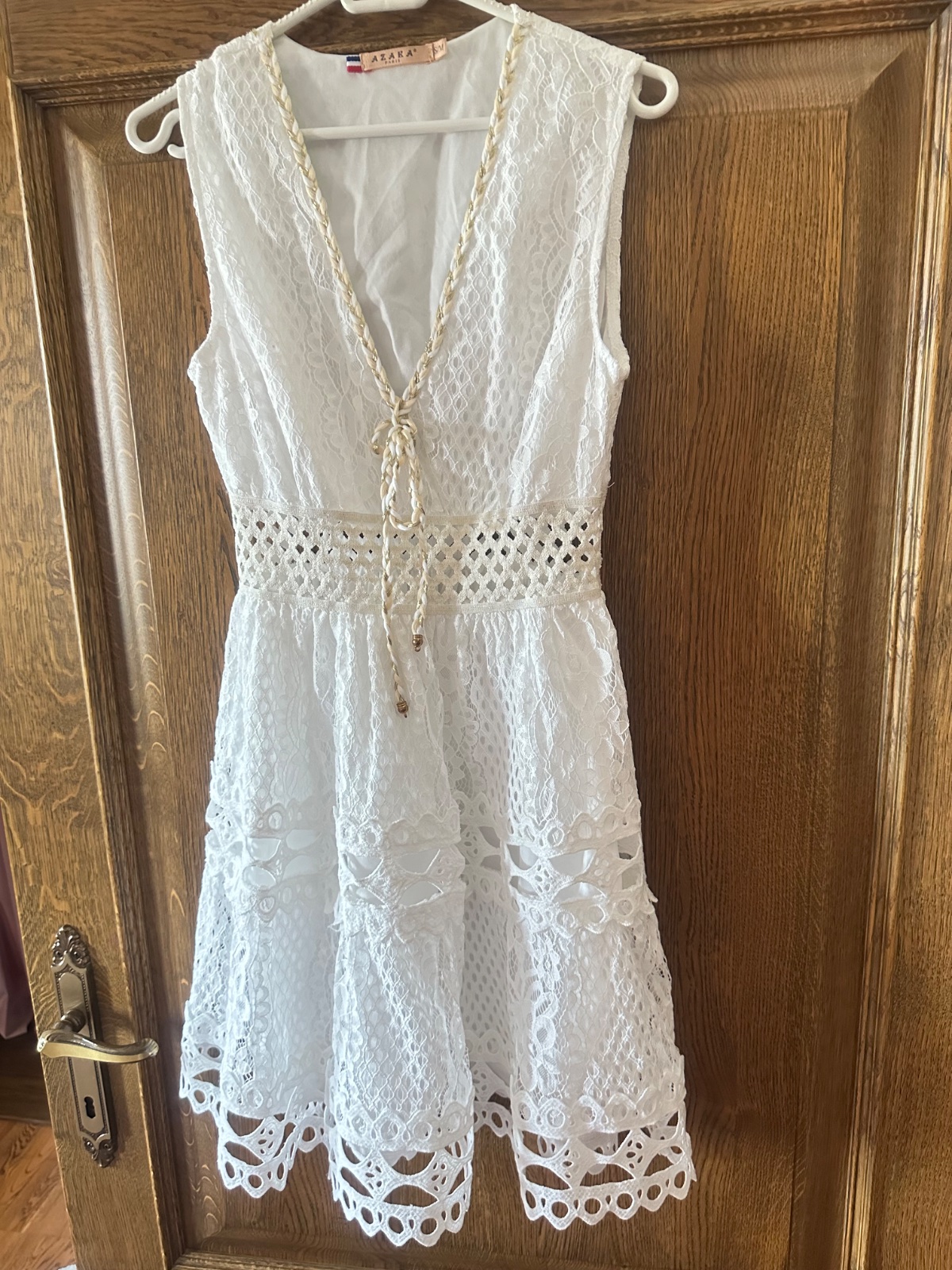 Krásne cipkovane saty. Krásne sedia na postave. Raz oblečené. Kúpila som ich aj jed sú mi male lebo sa mi páčili. Väčšie nemali. Pôvodná cena 47€