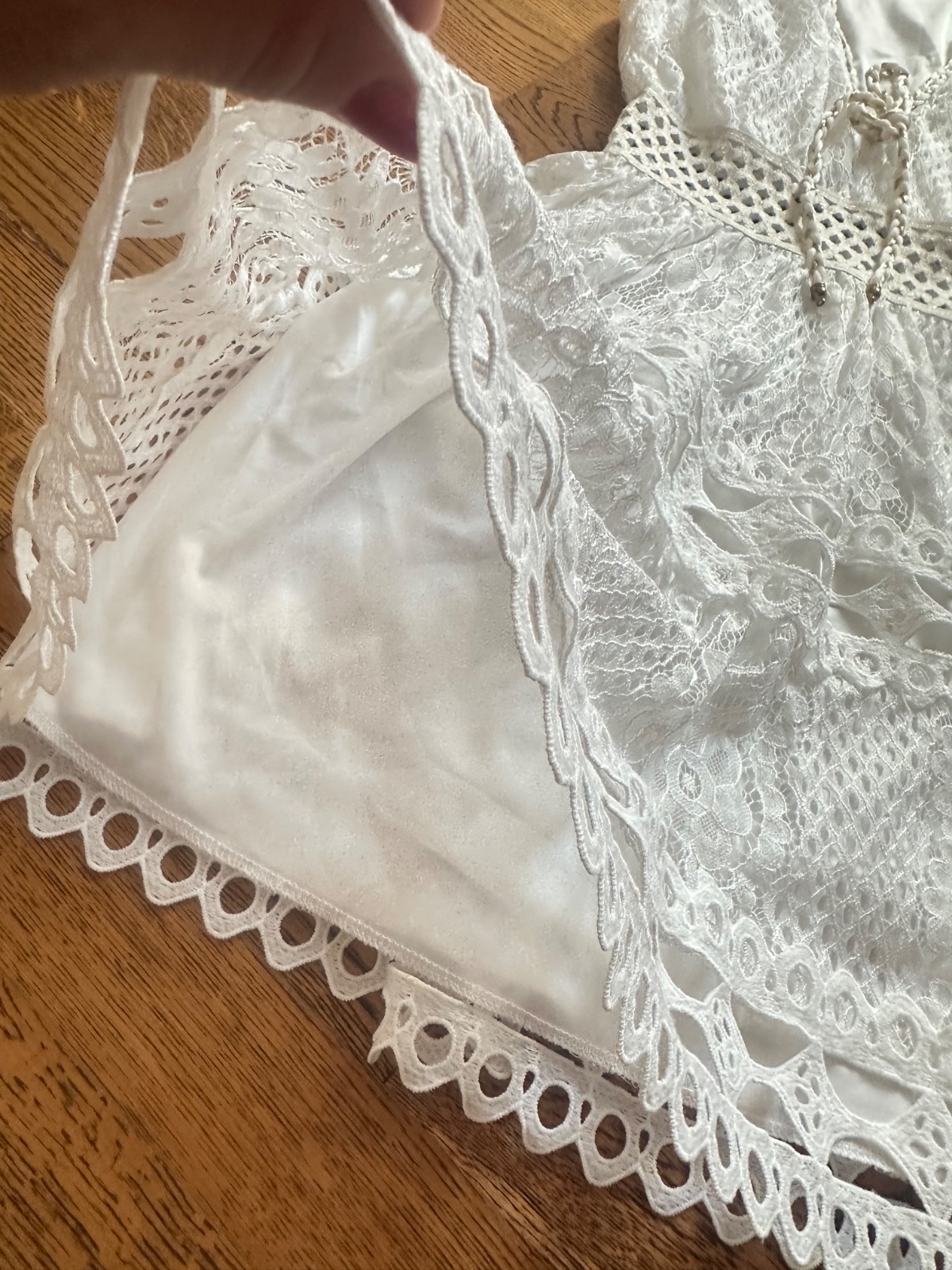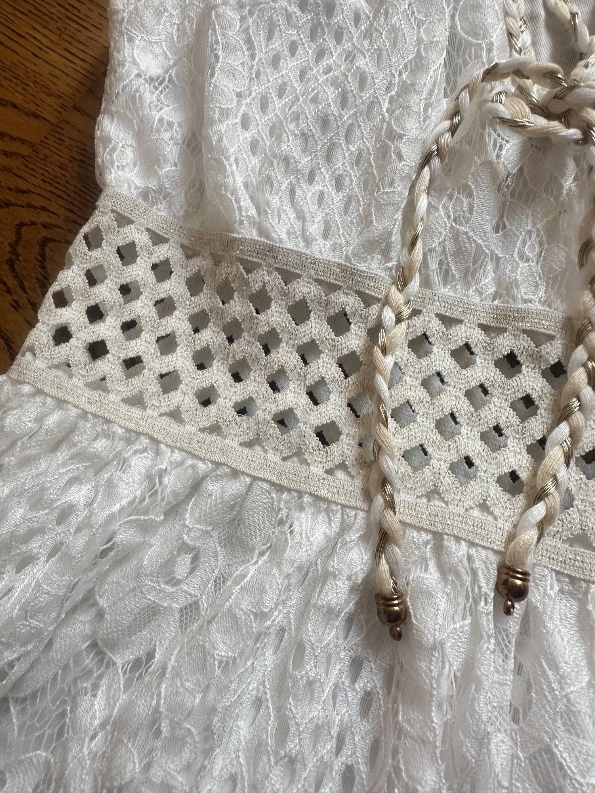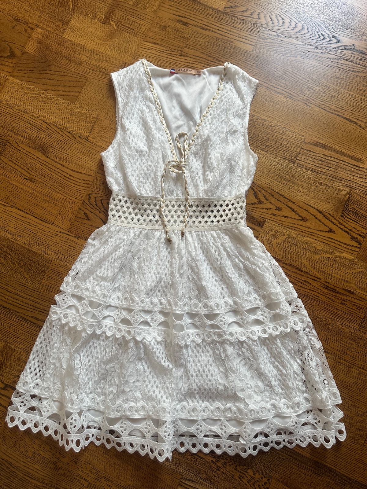 Krásne cipkovane saty. Krásne sedia na postave. Raz oblečené. Kúpila som ich aj jed sú mi male lebo sa mi páčili. Väčšie nemali. Pôvodná cena 47€
