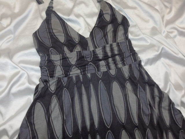 Kvalitné letné šaty čiernej farby s potlačou, uväzovanie vzadu na krku, materiál 96% viskóza, 4% elastan, super stav.