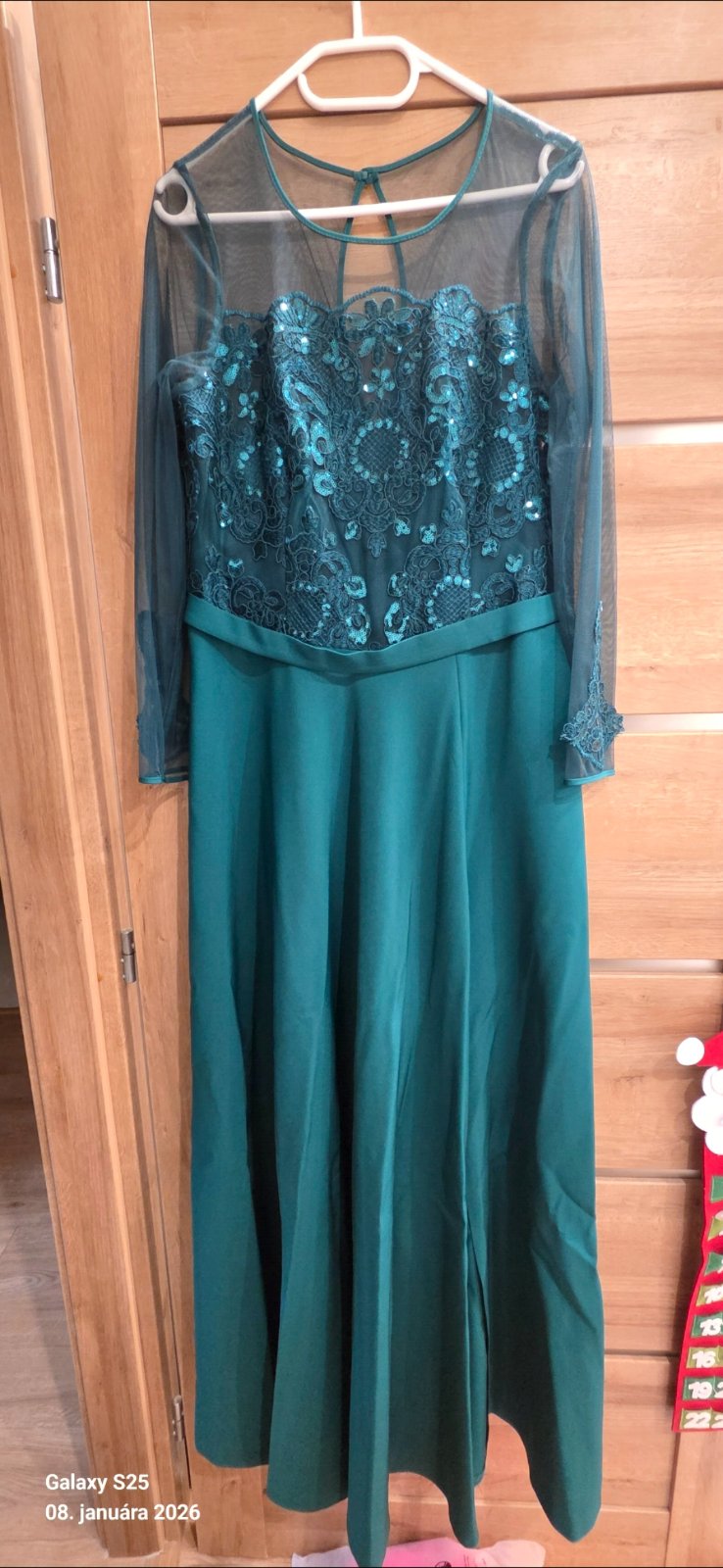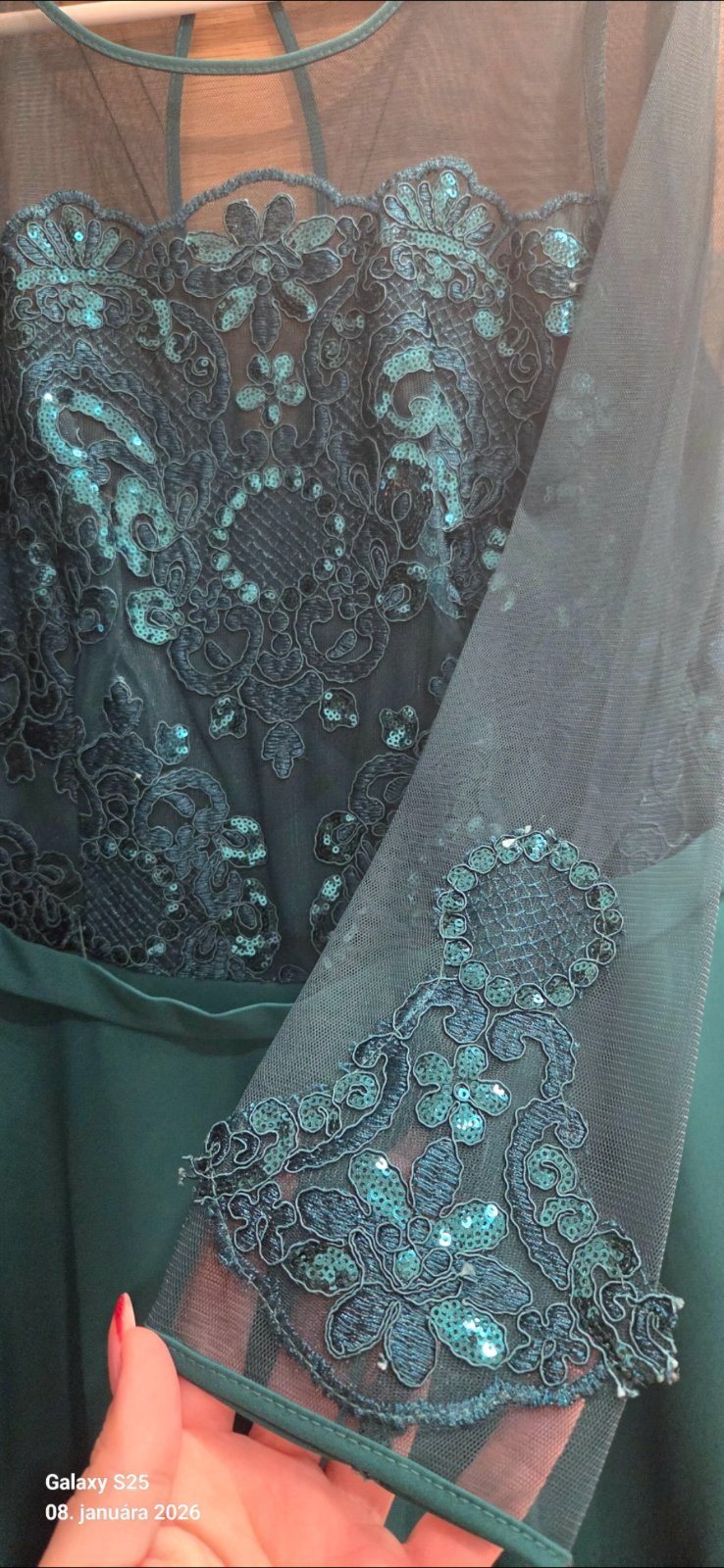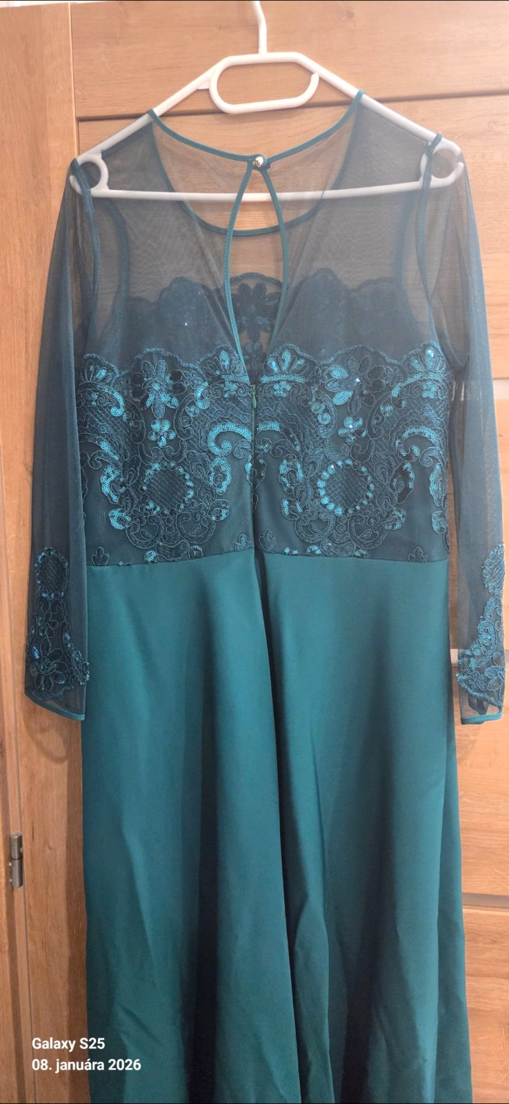 Predám smaragdové šaty, 1x oblečené, bez poškodenia. Píše veľkosť 46, ale skôr 42-44. Cena 40 eur. Farba je krajšia ako na fotkách.