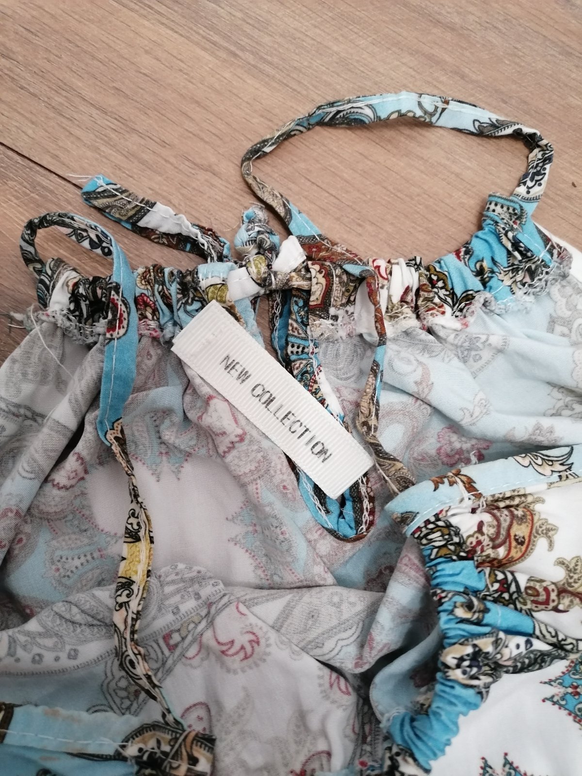 Prenádherné ľahké letné maxi šaty. Ramienka majú vpodstate až pri krku, medzi pásom a prsiami majú gumku na stiahnutie, po obidvoch stranách majú rozpaky ktoré som zasila trosku nižšie aby som šaty mohla nosiť do prace, nitka sa dá jednoducho rozstrihnúť ak by ste chceli pôvodne. Skvelé na leto, super farba, strih ktorý lichotí postave. Kúpené na stránke andzela.sk. Veľkosť UNI, ja som nosila ako M. Dĺžka od krku 126 cm, šírka v prsiach 43 cm.