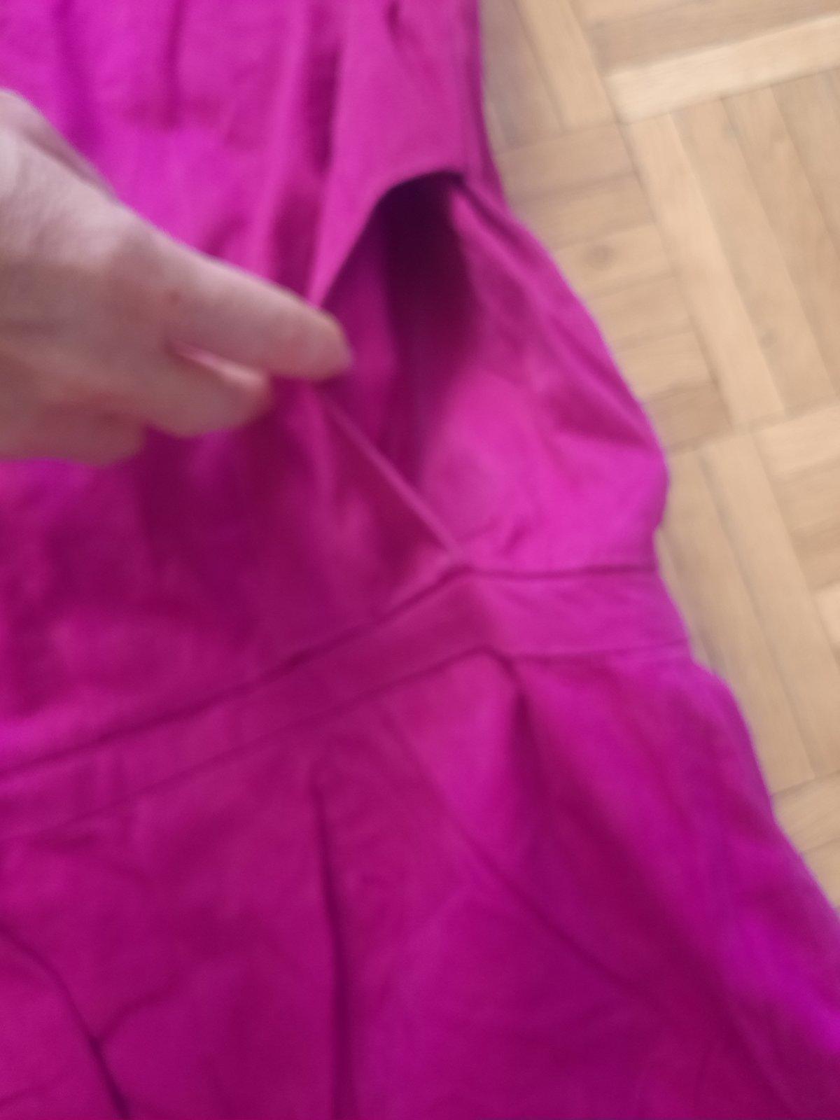 Krásne cyklámenovo ružové šaty, sú podšité. Z boku je zips na zapínanie, v páse sú prestrihnuté a vpredu majú vačok. Veľkostne sedia na S/M.