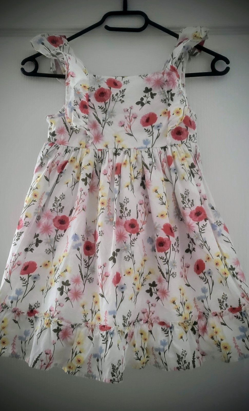 Veľmi pekné šatôčky s nežnými kvetinami v perfektnom stave. Môžu sadnúť aj ako 122.
