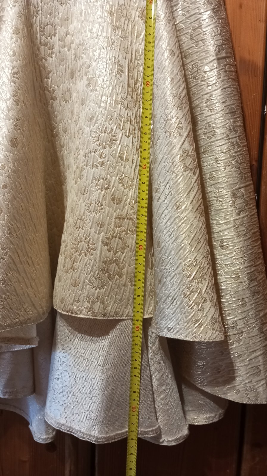 Jemná, ale pevná látka, šaty krémové v top stave, 2x na sebe. K šatám je opasok, dá sa ľubovoľne zaviazať.