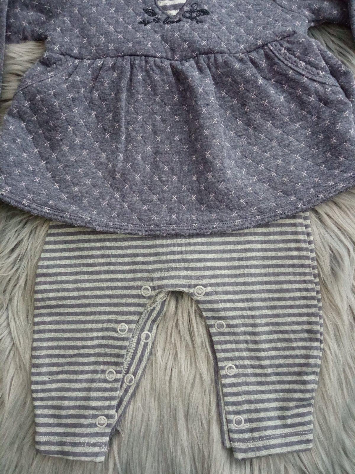 Kojenecké šaty s legínami, 3-6 mes, zapínanie vzadu na gombíky, legíny na cvoky, jemne elastické, top 58%polyester,22%bavlna,20%viskóza,legíny 95%bavlna,5%elastan.