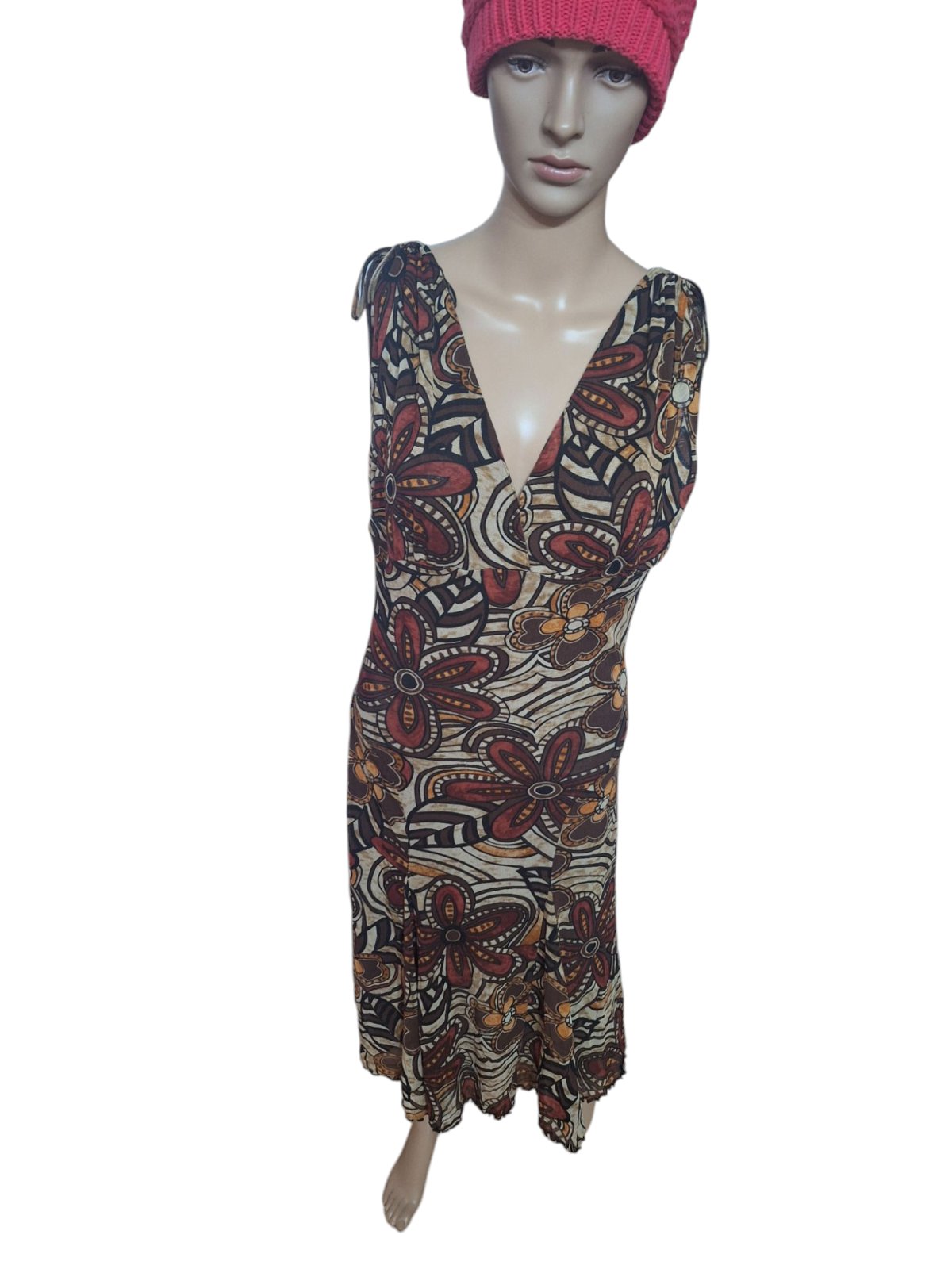 Nenosene letne viskozove sat. Mierne do strihu A. Velkost M/L, dlzka 95 cm, prsoa 105, pas volny cca 90-100. Farba ruzovo fialova.
