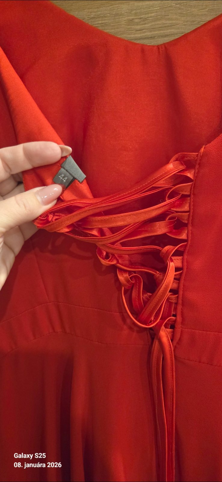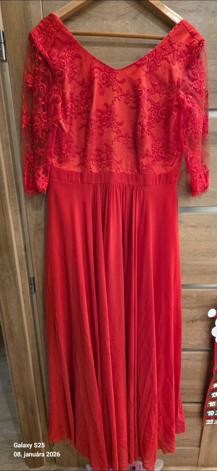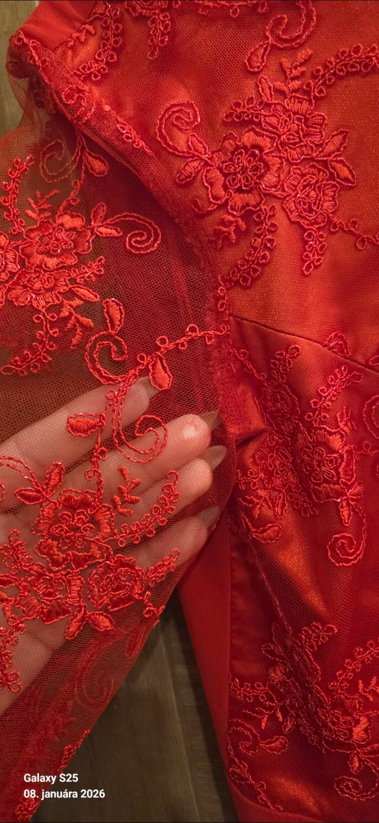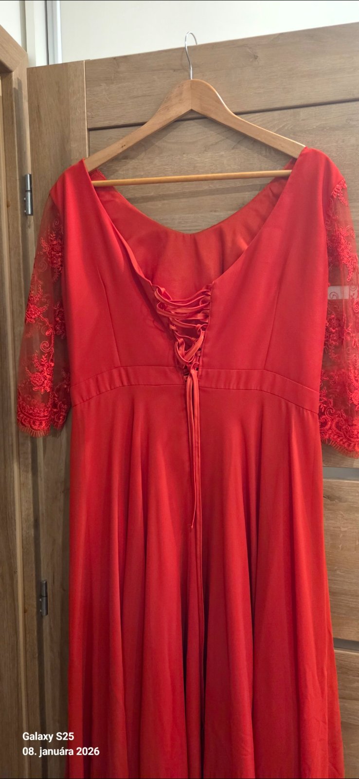 Predám krásne červené šaty 1x oblečené. Veľkosť 42-44 - vzadu na šnurovačku. Jediná chybička - malá dierka na rukáve pri pazuche, no pri nosení nevidno. Cena 38 eur.
