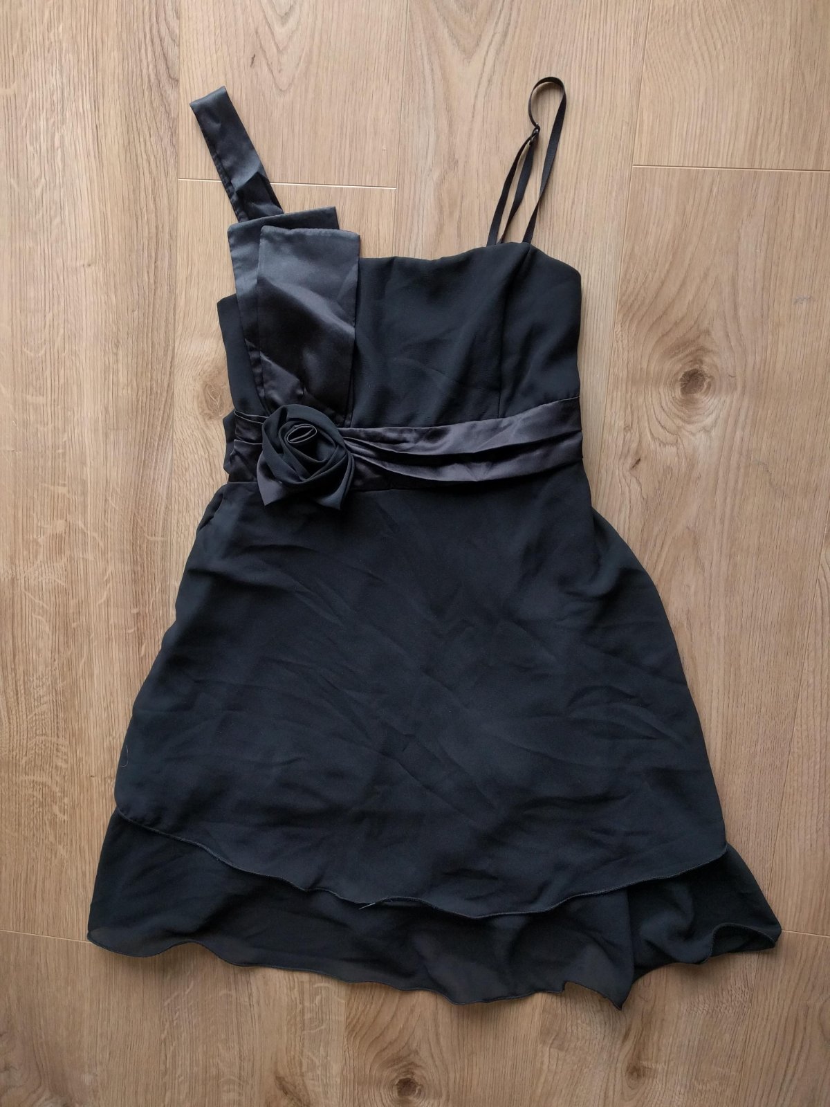 Elegantné šaty s detailom saténovej ružičky, opasku a jedného ramienka. Oblečené na príležitosť, ako nové. Ľahké, vzdušné. Cena bez pošty.