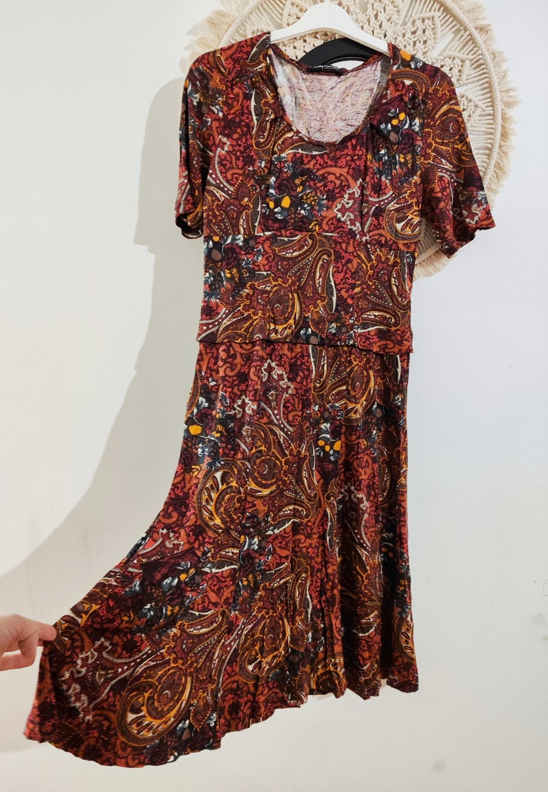 jedinečné, nádherné farby a strih, zvýraznia postavu v páse gumičky netískajú výstrih do V taký preložený, veľmi pekné šaty rada som ich nosila sú vo výbornom stave odporúčam tak na M/L asi príjemn...
