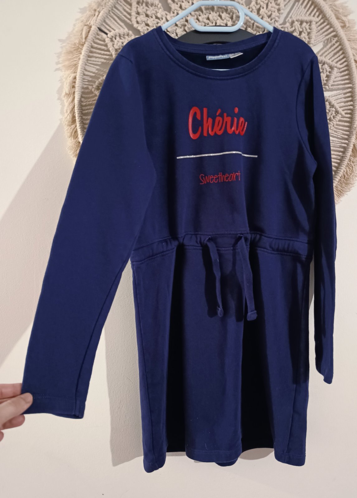 Predám raz oblečené upletove šatky na jesen zimu. krásne do školy. bez chýb veľkosť 146/152 Dĺžka vpredu 77 cm vzadu 80 cm Šírka sa dá upraviť opaskom Rukáv meraný od tmavej časti dole 54 cm- to ...