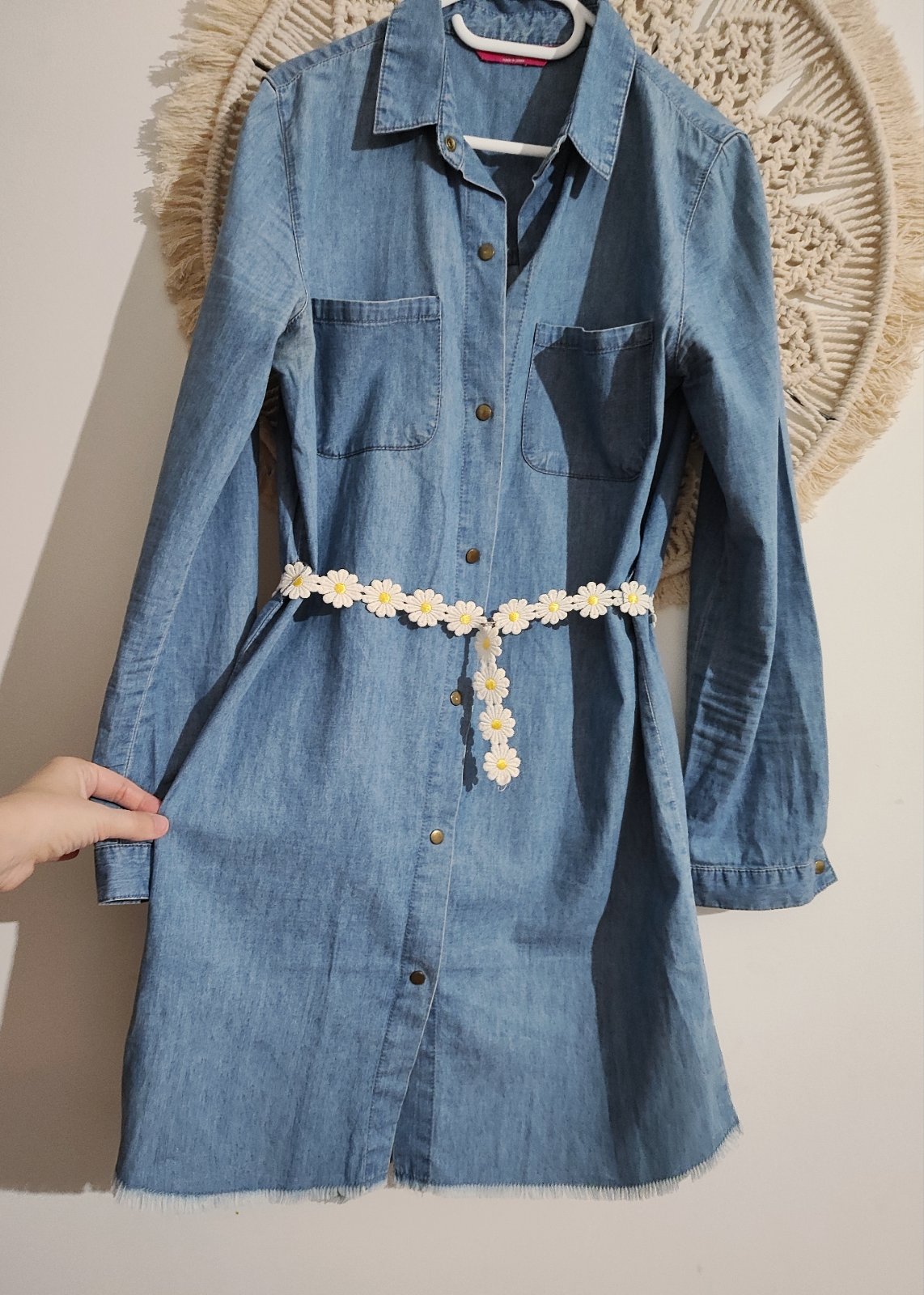 Šaty v rifľovom vzhľade s prekríženymi ramienkami vzadu na chrbte. Nosené v bezchybnom stave. Šaty sa dajú nosiť celoročne. Veľmi pekne ukážu aj na tričku a leginach.