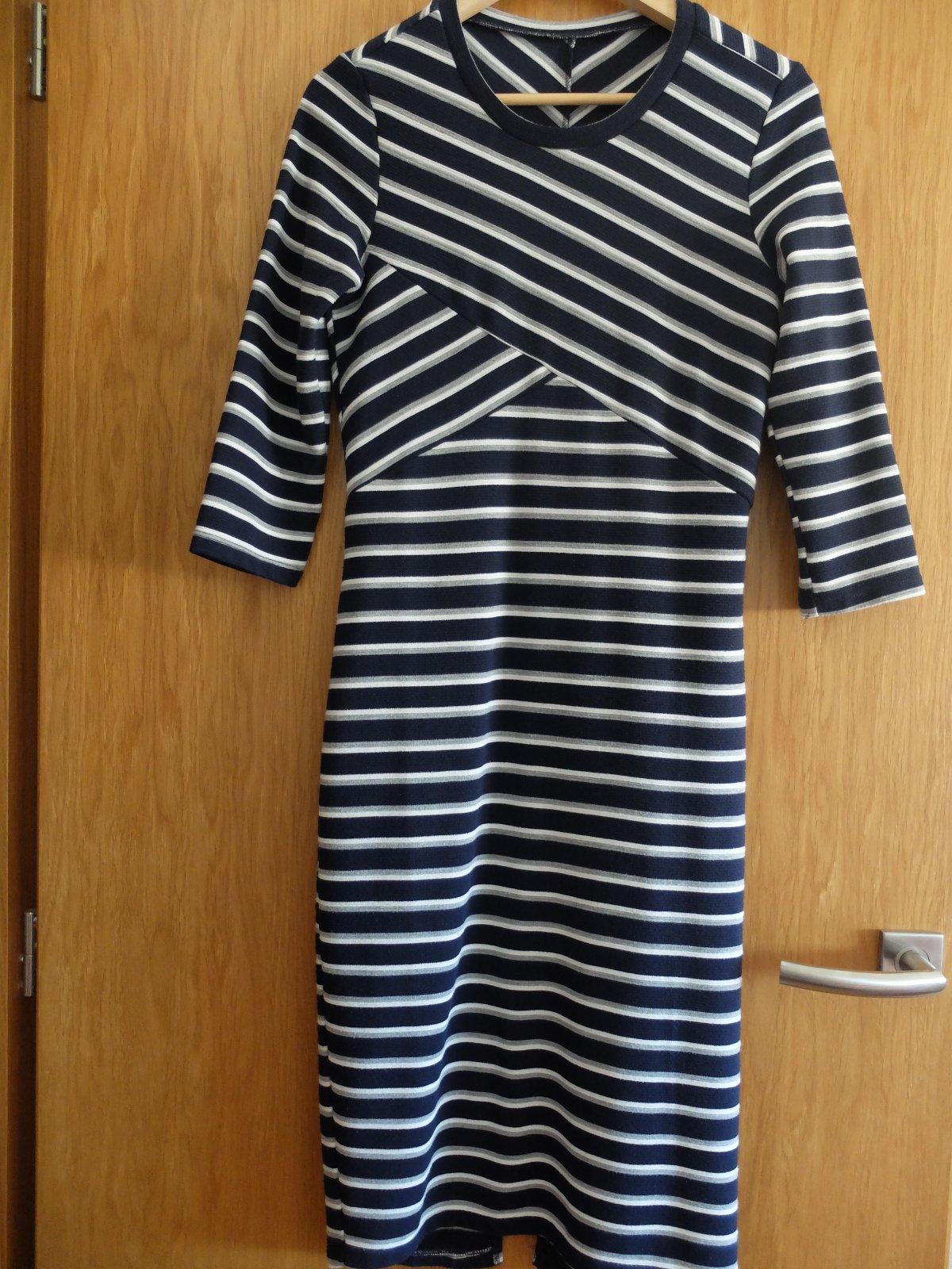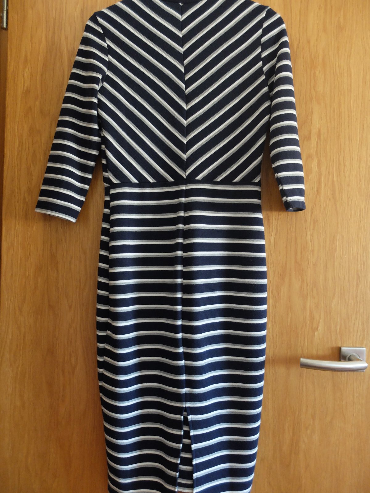 Kvalitné šaty z hrubšej bavlny, piše L no skôr M, preto merajte. Zapínanie vzadu na zips po celej dlžke, 3/4ťové rukávy. Top stav! Pekne tvarujú postavu. Dlžka 89, širka pod pazuchami 43cm v klude,...