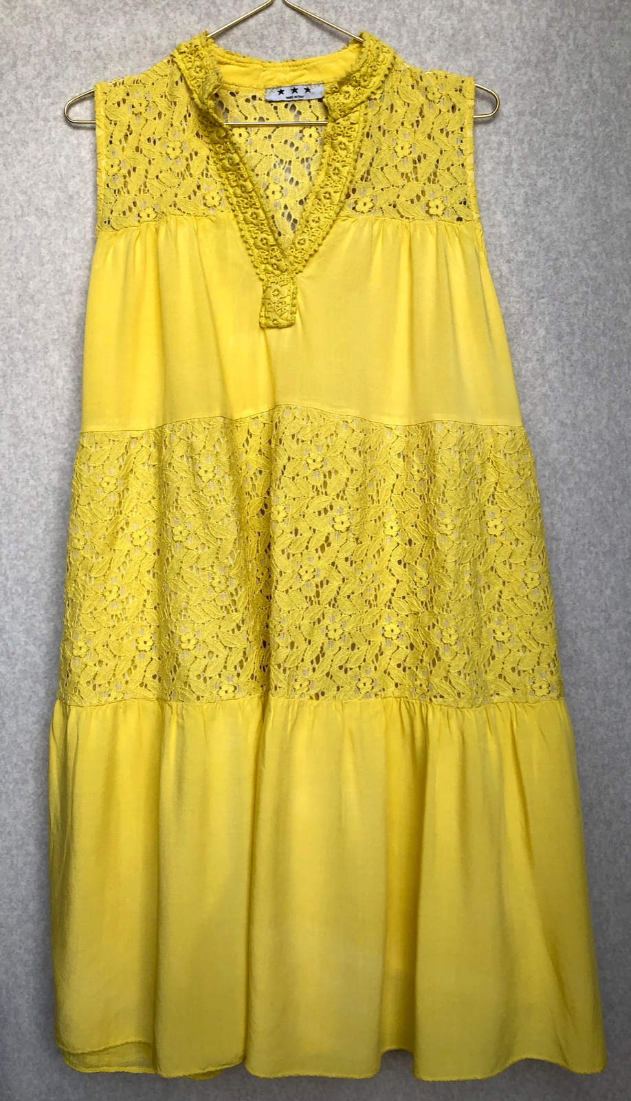 Výrazné pohodlné šaty na leto s akcetom čipky. Zvnútra s extra vrstvou jemnej bavlnenej látky. V peknom stave, bez poškodení.