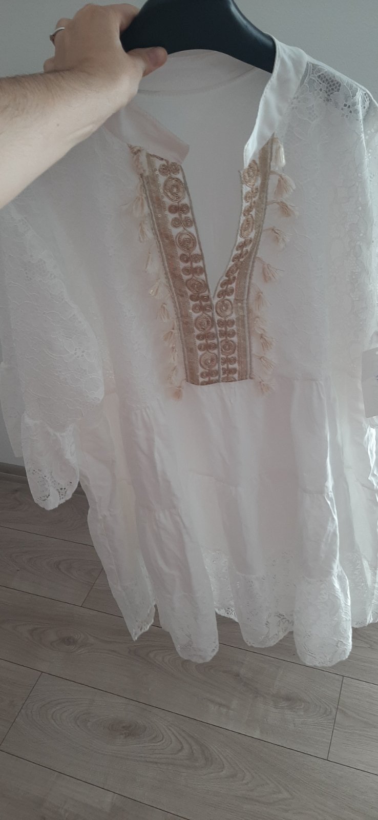 Háčkované čipkovane šaty tunika na plavky. Krásne sedí vpredu na uviazanie.