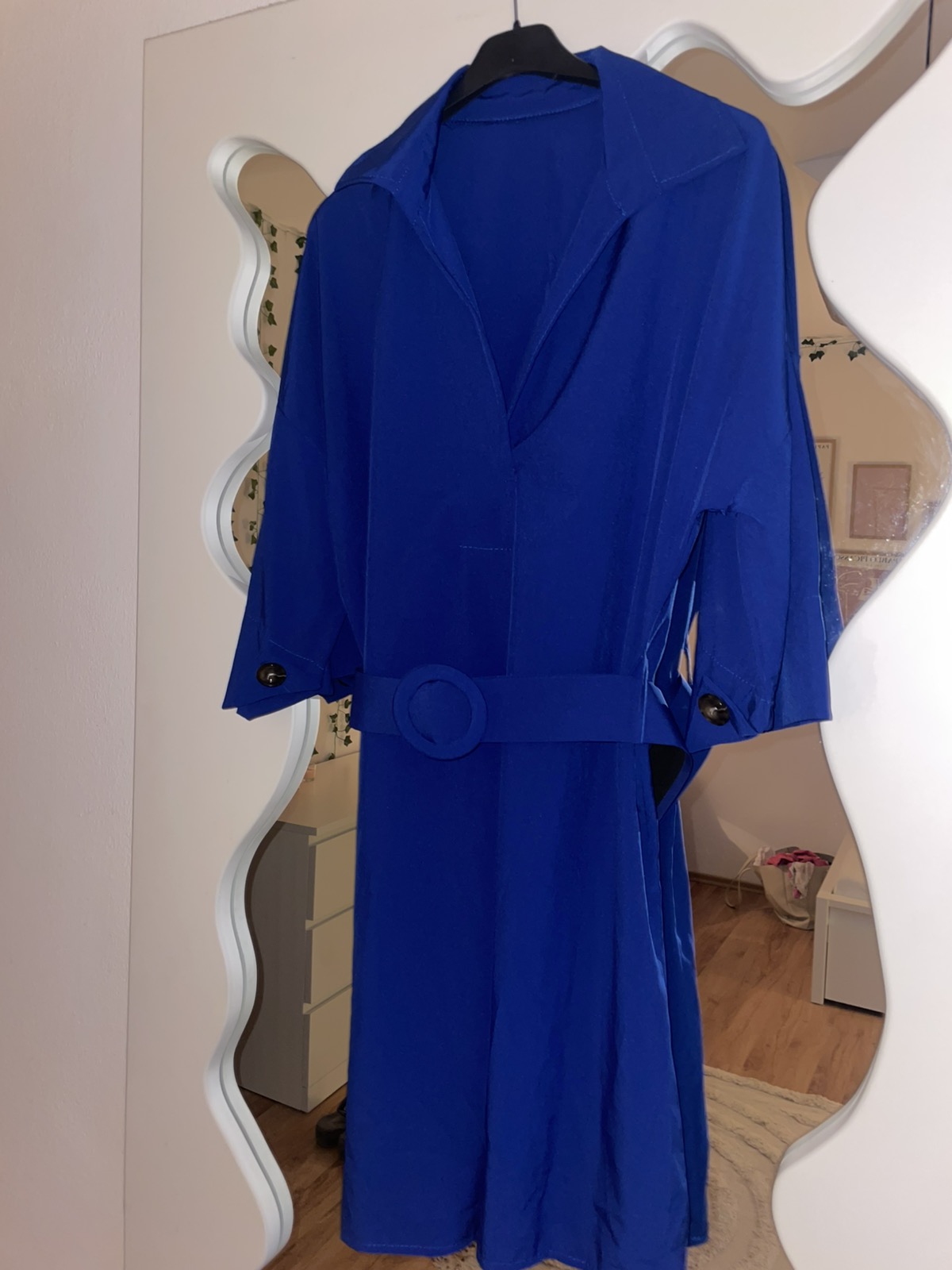 Nové bez visačky, kráľovská modrá, voľné košeľové šaty s opaskom, sedia na M, šírka pod pazuchami 58 cm, dĺžka 90 cm