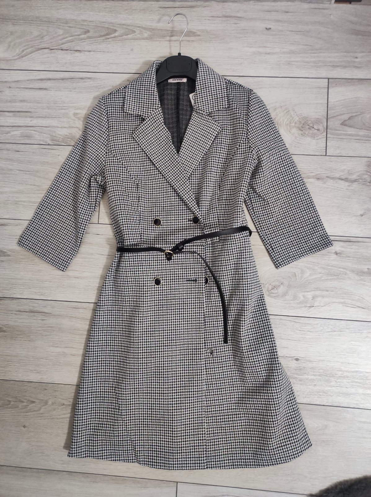 S vreckami, vzadu na zips, sukňa do A, s opaskom, dĺžka 107, pás 37cm, pod pazuchami 44cm, top stav, vhodné aj na chladné počasie