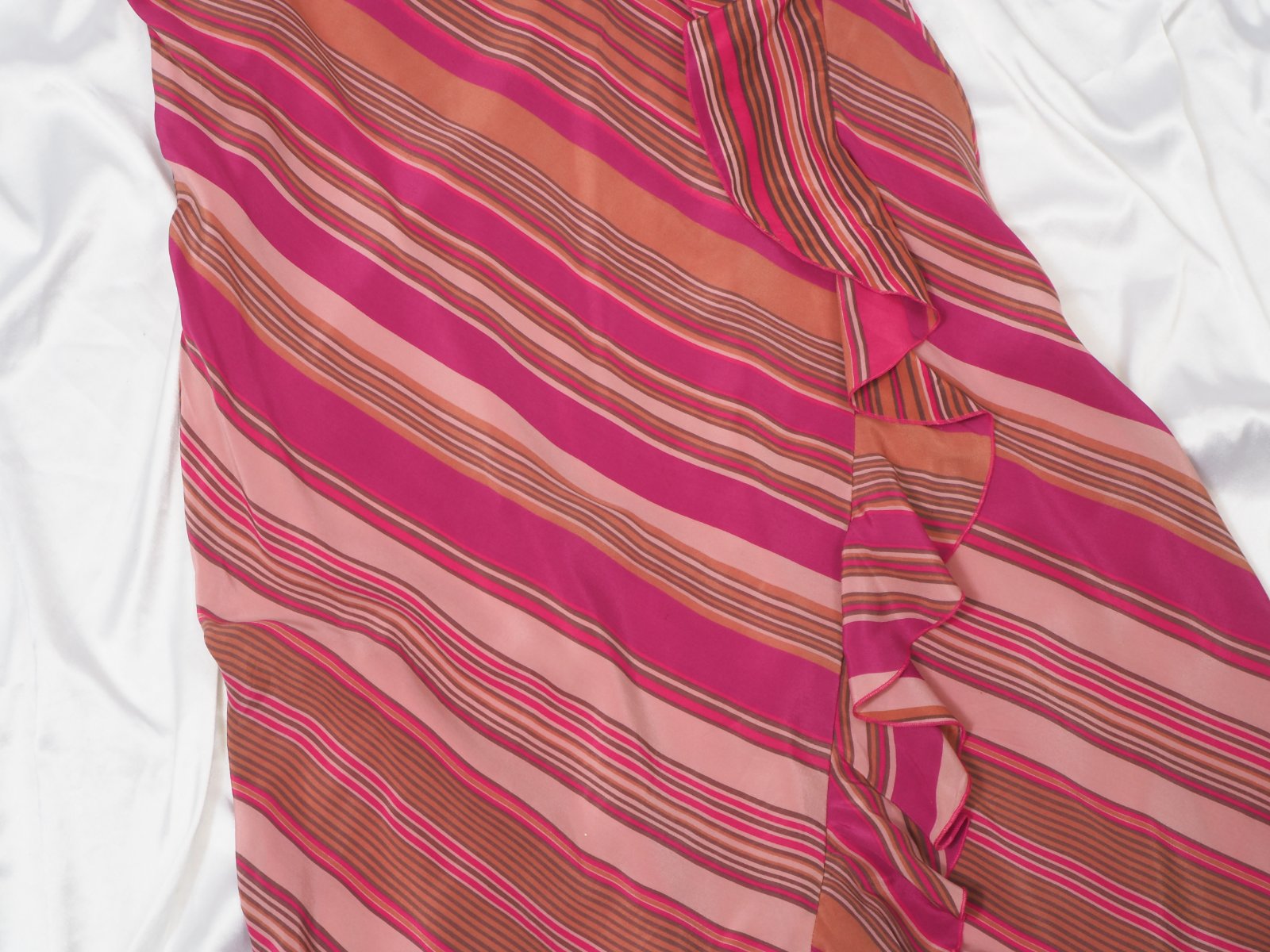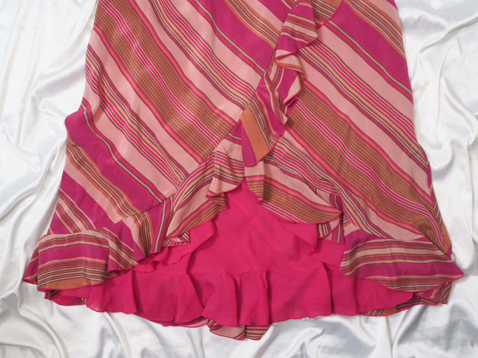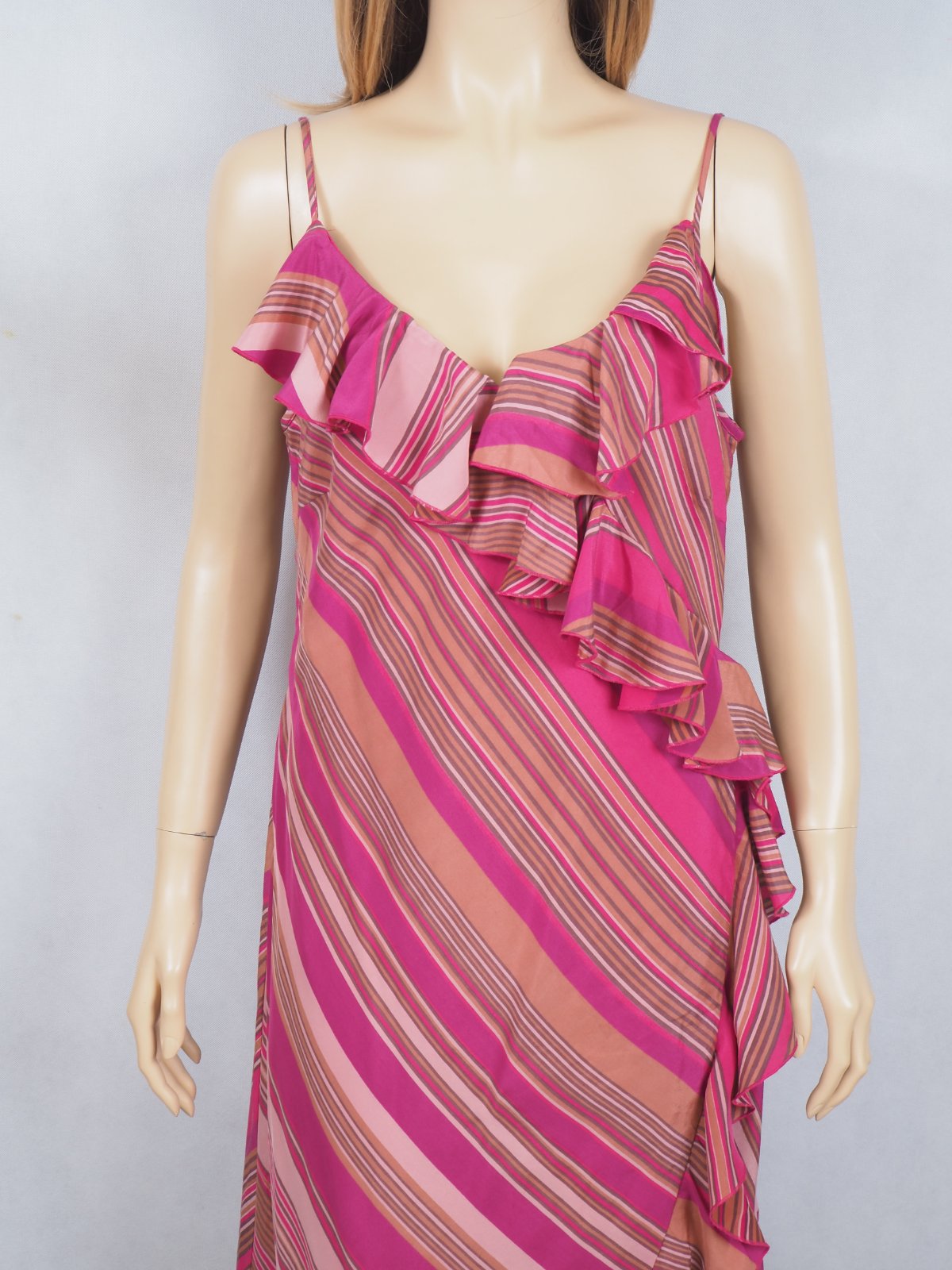 Luxusné hodvábne šaty, na ramienka, volánové, podšité, materiál 100% hodváb, nové s visačkou.
