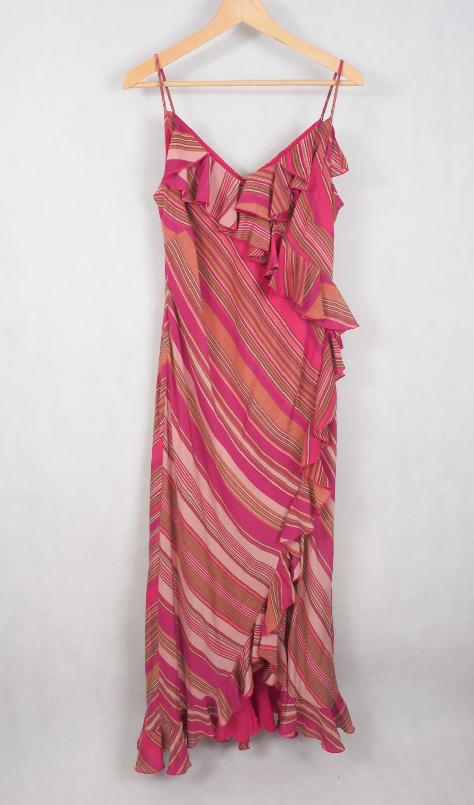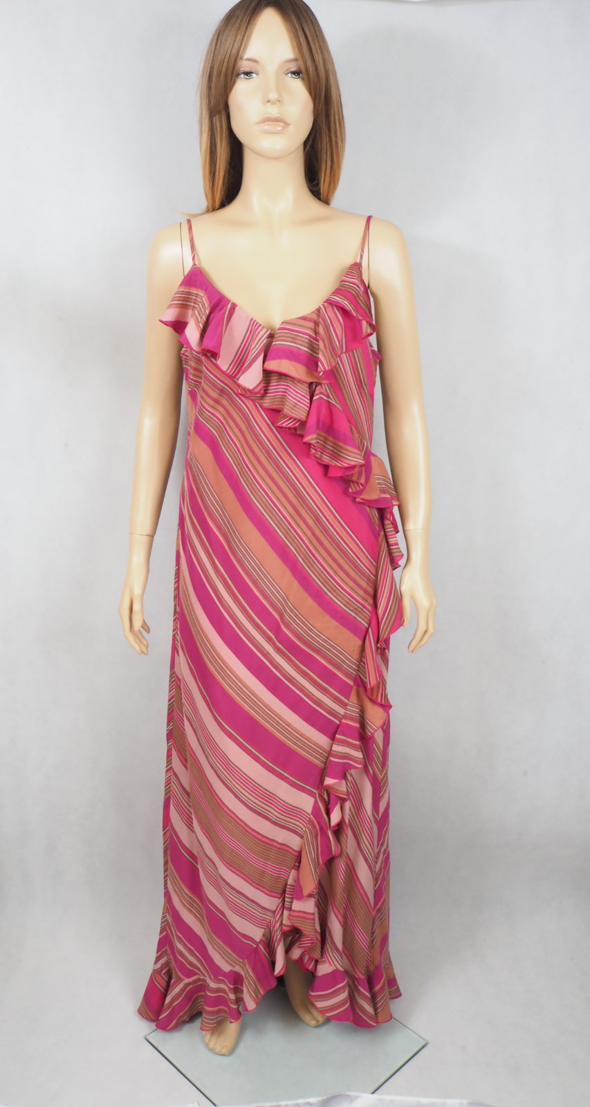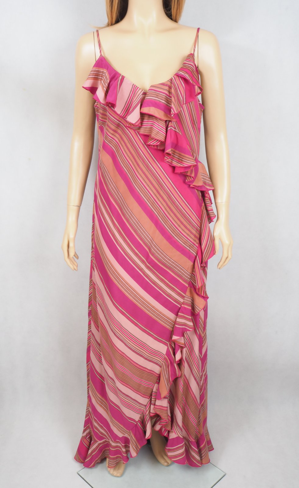 Luxusné hodvábne šaty, na ramienka, volánové, podšité, materiál 100% hodváb, nové s visačkou.