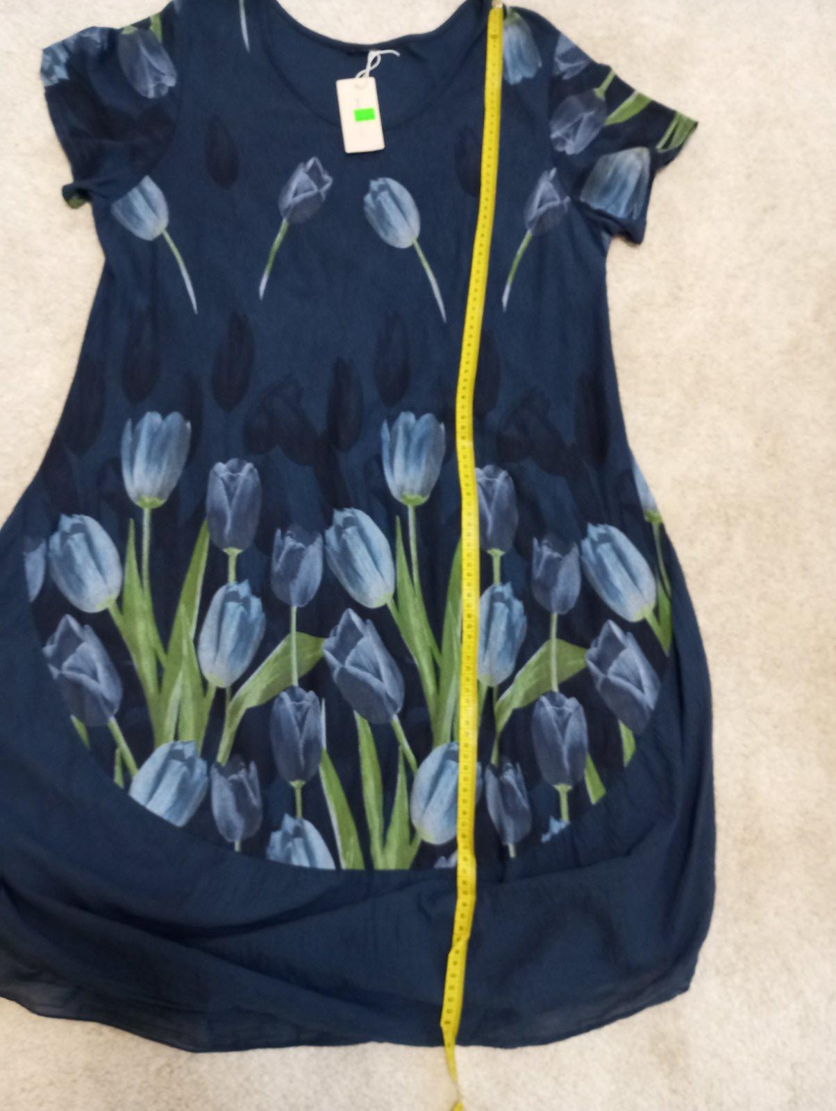 Nové šaty, nesadla veľkosť, uvedena XL, sedi na L, na rukavoch gumka, taky jemny lahky materiál, cena +poštovné