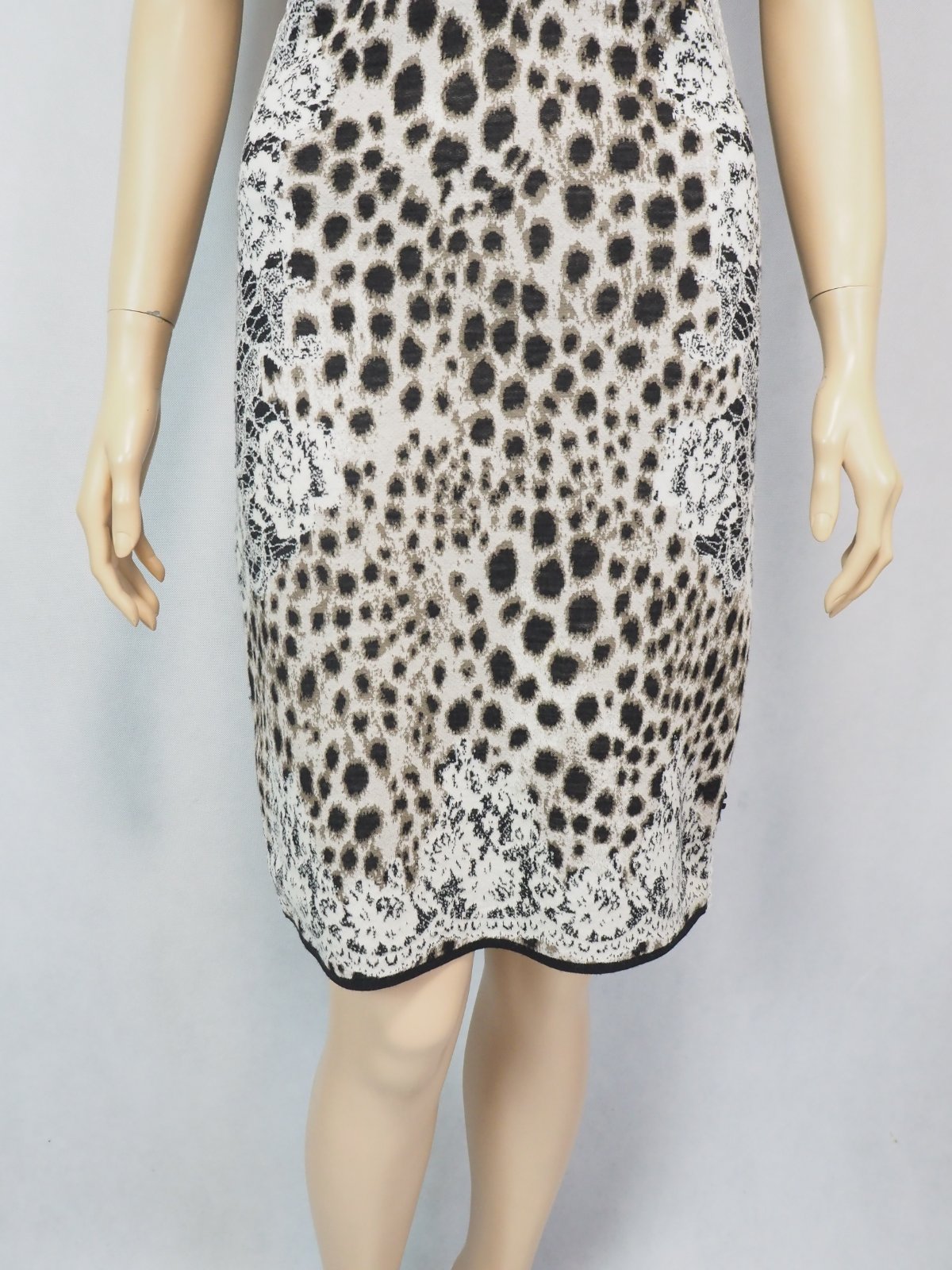 Luxusné úpletové šaty béžovej farby so vzorom, zdobené čipkou, na boku zips, príjemnýmateriál, super stav, ako nové.