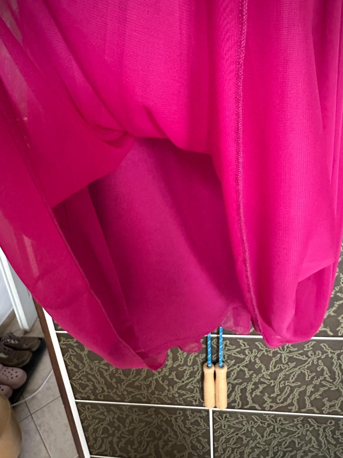 Predám veľmi pekné slávnostné ružové šaty, použité 1x na svadbe, odhadom veľkosť S. Šaty sú v TOP stave, peknej cyklaménovo ružovej farby. Vpredu na dekolt padá akoby vlna z látky, majú regulovateľ...