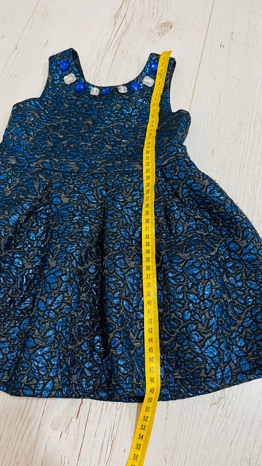 V dobrom stave. Vzadu na gombíky a stužku. Veľkosť 98-104. Na šatách sú drobné aplikácie.