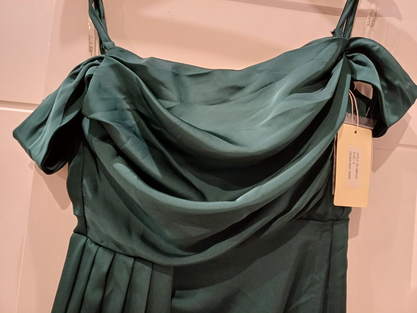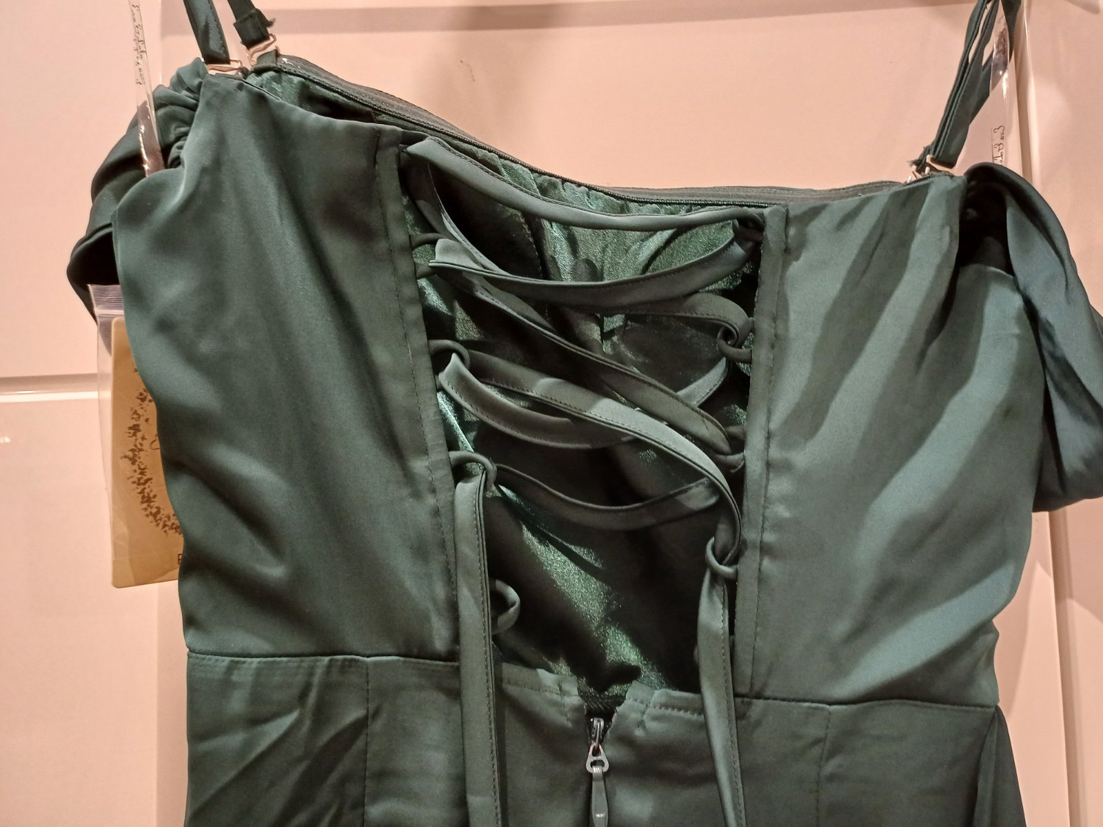 Neprehliadnutelne luxusne saty.Zelena farba sa jemne meni v zavislosti od svetla....daju sa nosit aj bez podprsenky(su tam vankusiky vsite) Ja som ich mala s podprsenkou:) Velkost S/M.