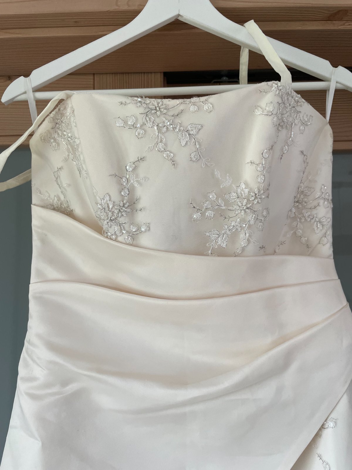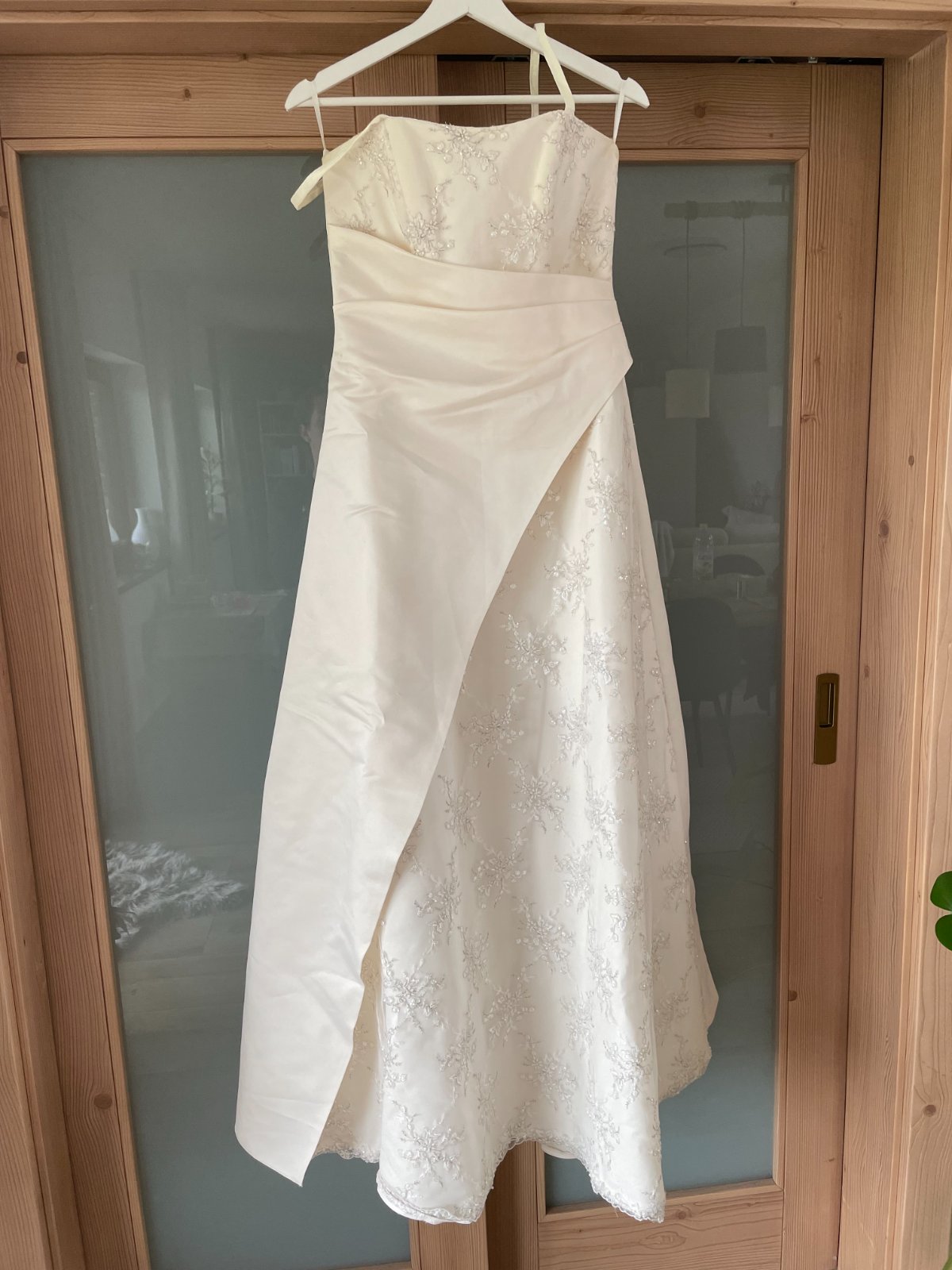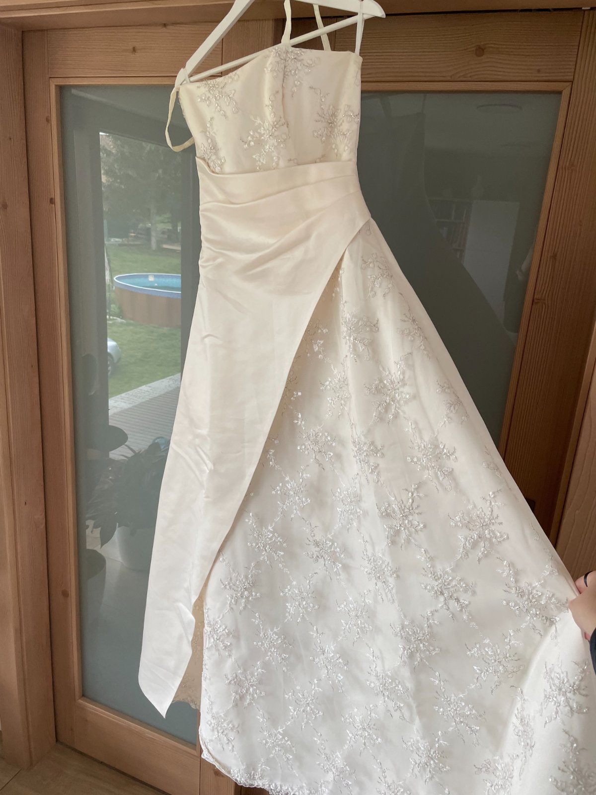 Predám svadobné šaty, nikdy nenosené, len skladované v skrini. Nie sú snehovobiele, ale krémové, mohli by byť použité aj ako spoločenské šaty. Majú ramienka, ktoré sa dajú schovať a vzadu majú šnurovanie, takže aj ich veľkosť je upraviteľná. Sadnú podľa mňa na veľkosti S aj M, najlepšie je vyskúšať osobne. (Bánovce nad Bebravou)
