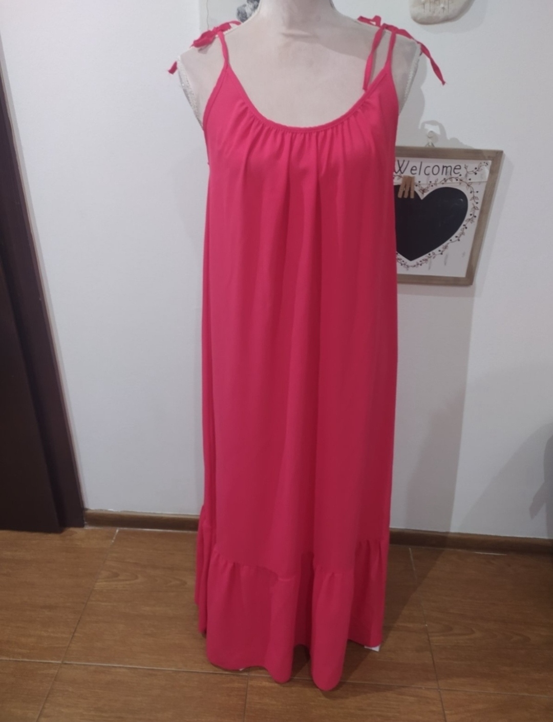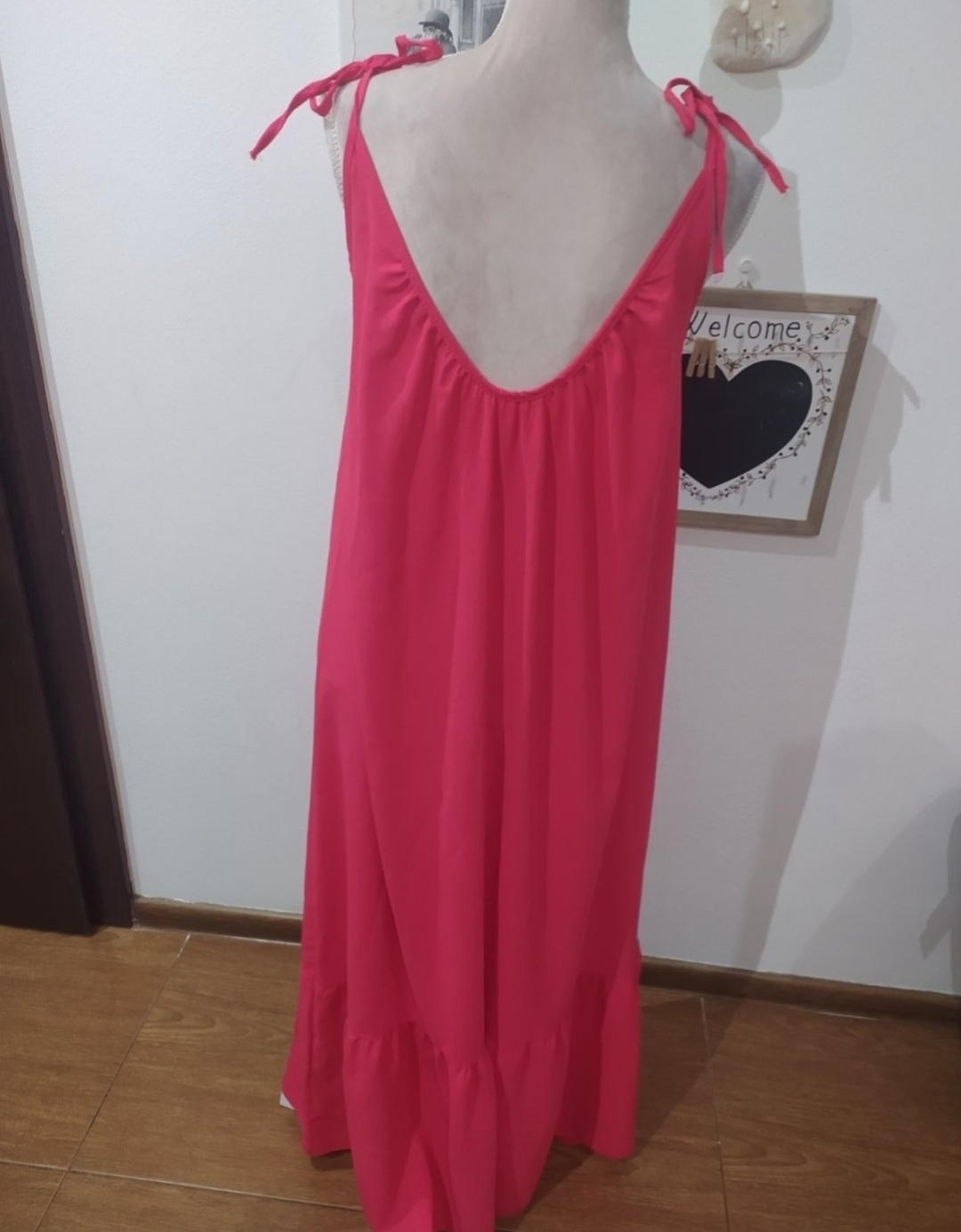 krasne letne maxi saty s odhalenym chrbtom. saty sa na ramenach uvazuju takze si sama regulujuete aky velky vystrih budete mat na chrbte. velkost UNI , ihned k odberu ruzove dlzka cca 114cm materi...