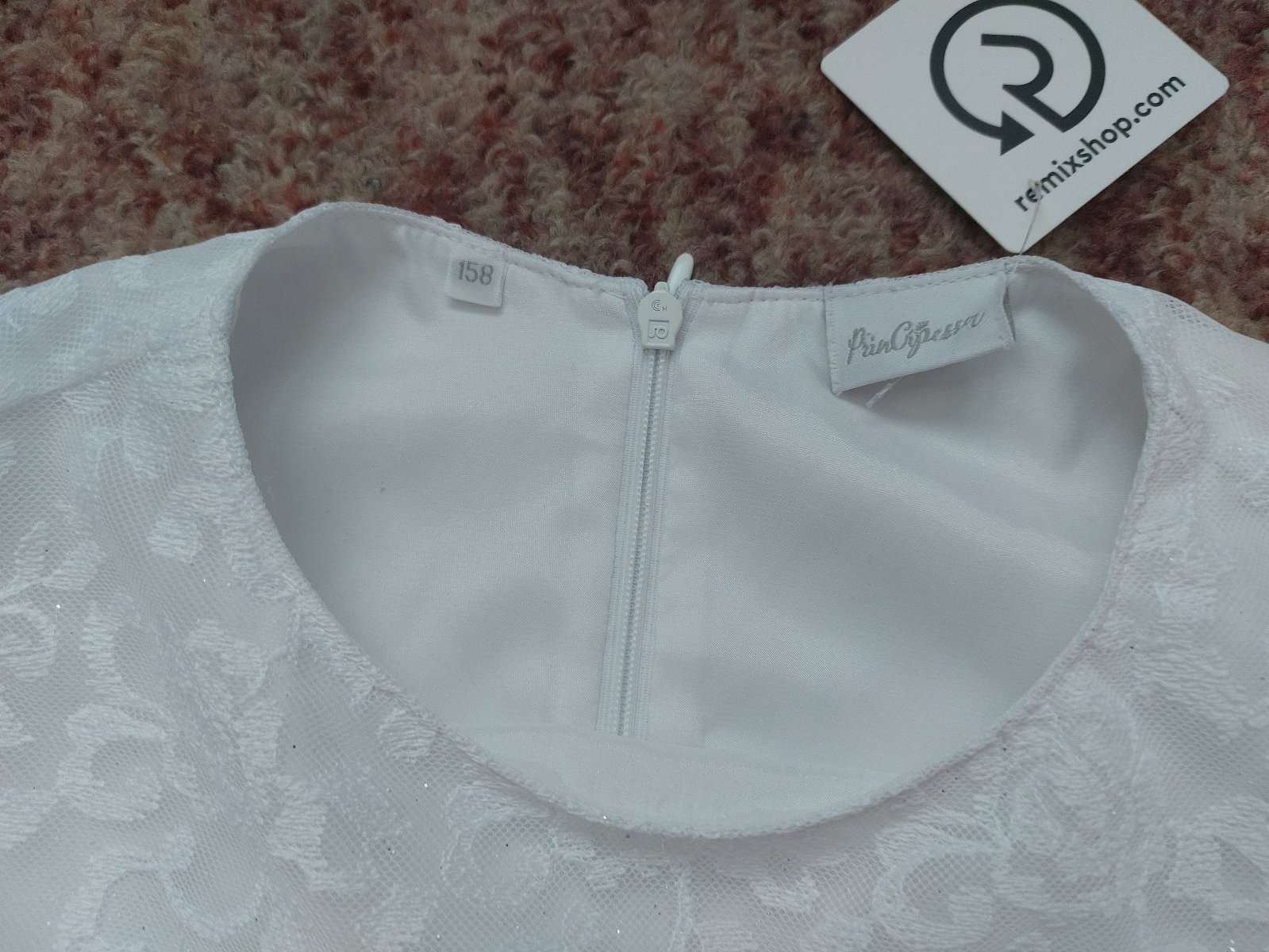 Na sukni je drobné poškodenie - bodka vyzerá ako od pera (odfotené na detailnej fotke).